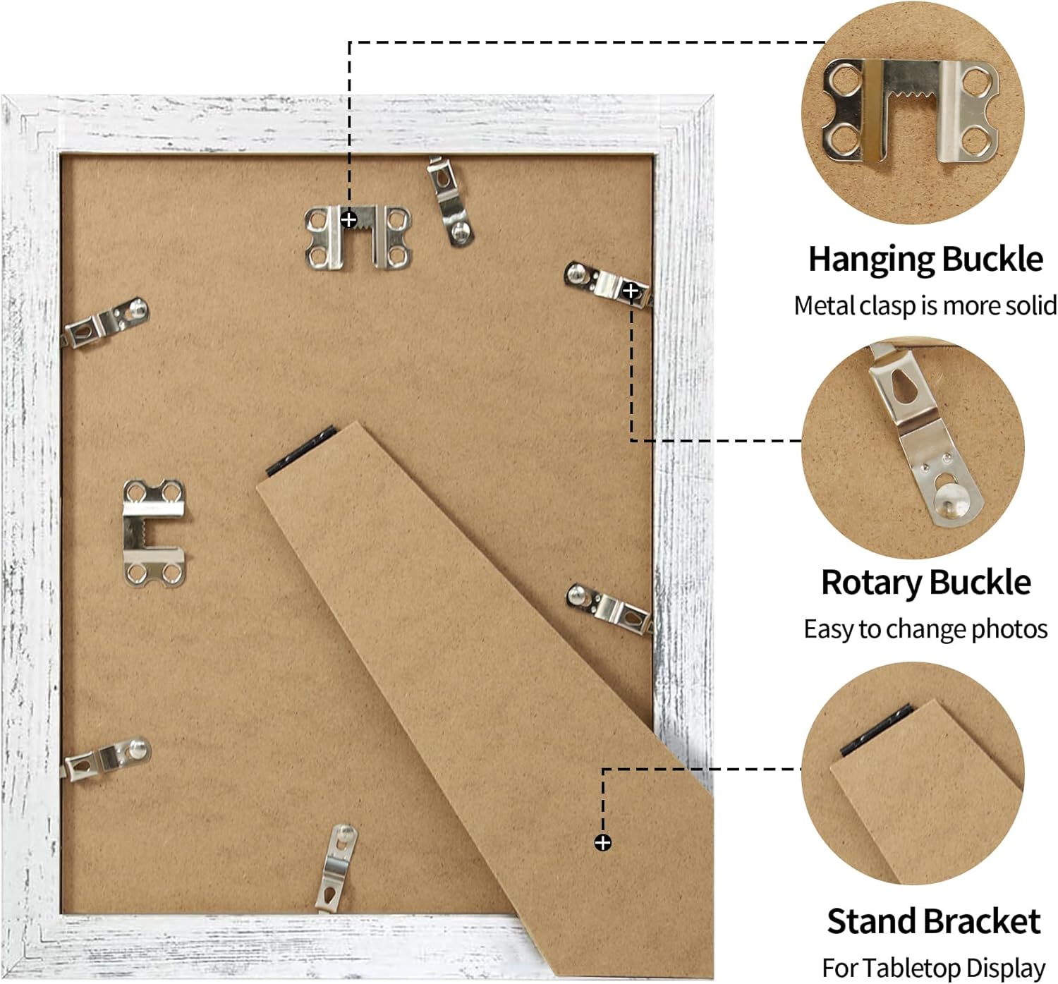 • Multi Frames Collage Set: Includes 4 frames in the same size. Perfectly fits 8.5x11 inch pictures without mat. The frame opening display size is 0.5 inches smaller than the photo size for secure mounting.