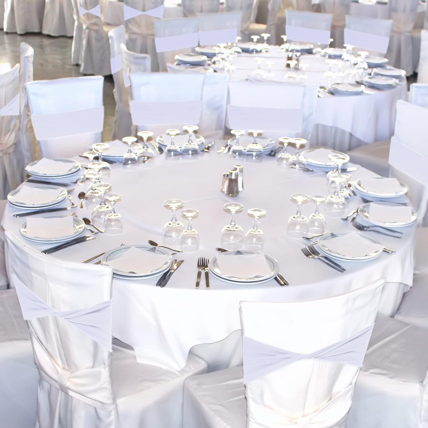 Kinlop 50 Pcs Spandex Chair Sashes Bows Chair Bands Slider Sashes for Covers Elastic Bands Ties Without Buckle Decorations for Wedding Party Events Ceremony Birthday(White)