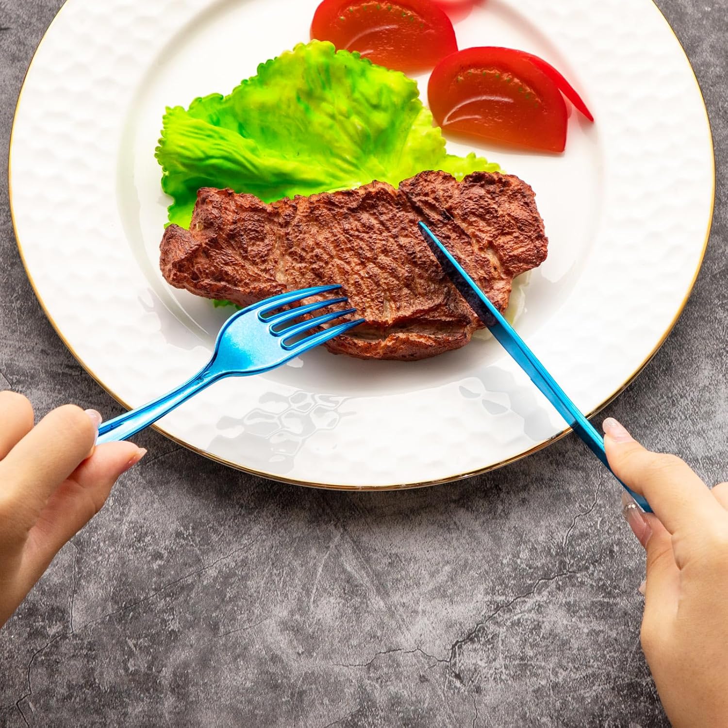 • Durability: Blue plastic silverware is made from high-quality plastic materials that can withstand regular use, making it ideal for outdoor gatherings, picnics, or events where the risk of breakage is higher compared to glass or ceramic tableware.