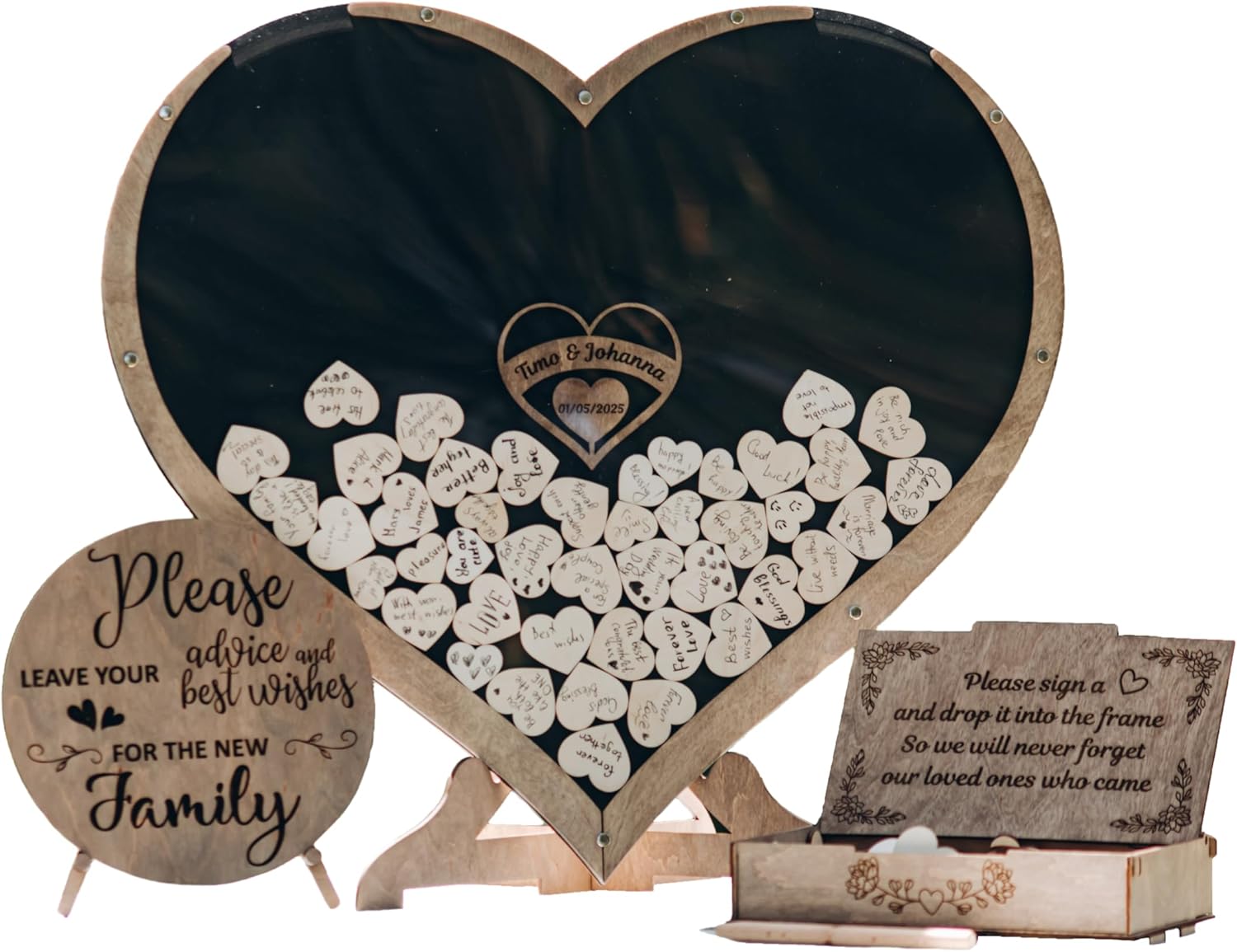 • 【Can Be Customized】Customize your wedding drop box guest book - write names and date. Choose the size of the heart guestbook sign according to the number of your guests.