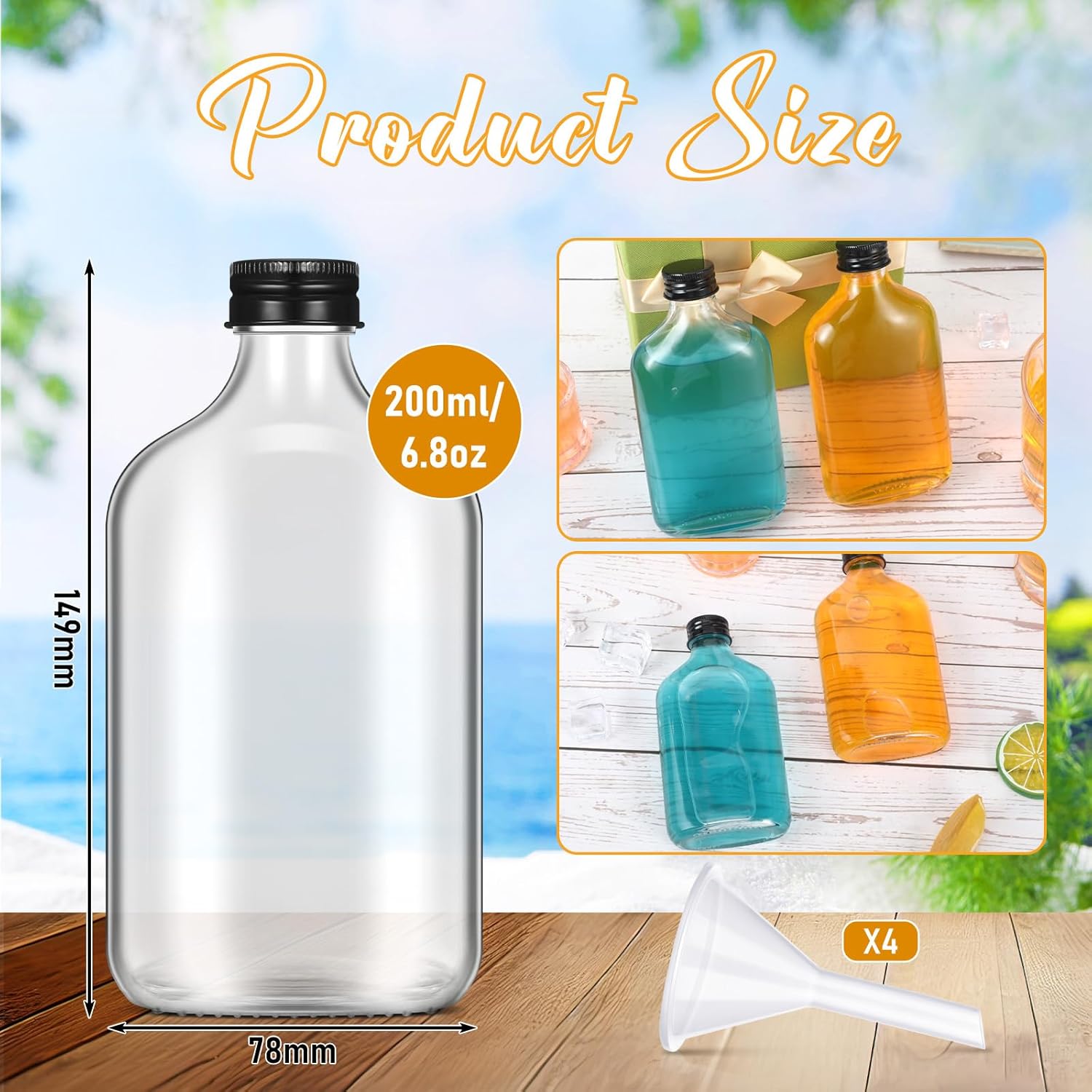 Gejoy 24 Pcs Mini Liquor Bottles Reusable Glass Flask Bottles with Black Caps Clear Empty Alcohol Shot Jars Small Champagne Jars with 4 Funnels for Wine Weddings Party Favors Christmas(6.8 oz)