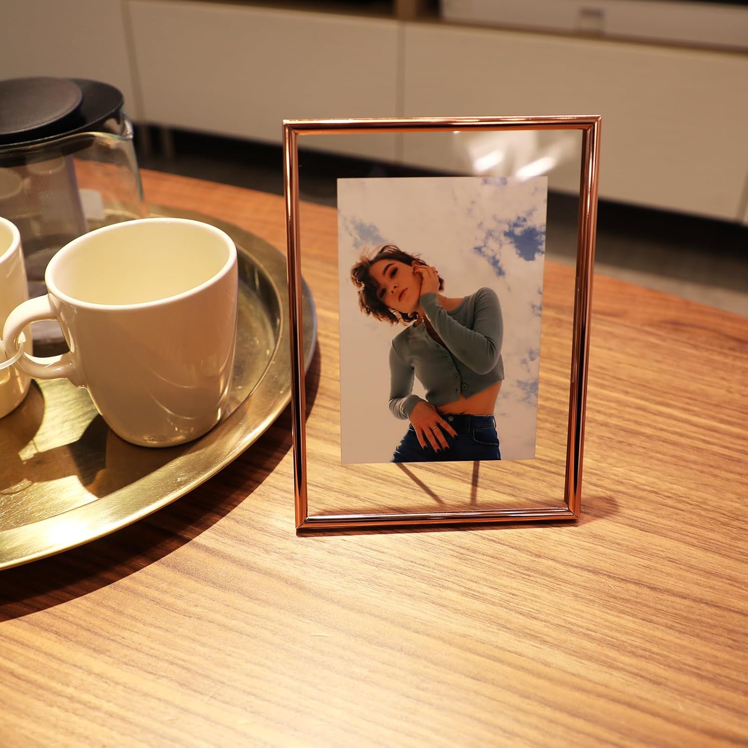 • 【Romantic Design】A rose gold metal frame with heart-shaped stand(Put you in my heart) and transparent glass, making it looks very romantic and elegant. It appears that the photo has a floating effect on it, So you can focus on the photo.