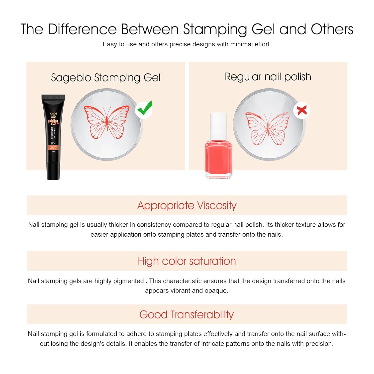 • 【Easy to Use】Nail art clear stamper set Made from natural resin, lower odor, safe ingredients, which lets you stop worrying about hurting to your health. These gels can be scraped repeatedly for stamp plates and stamper. Need to be cured under UV/LED lamp.