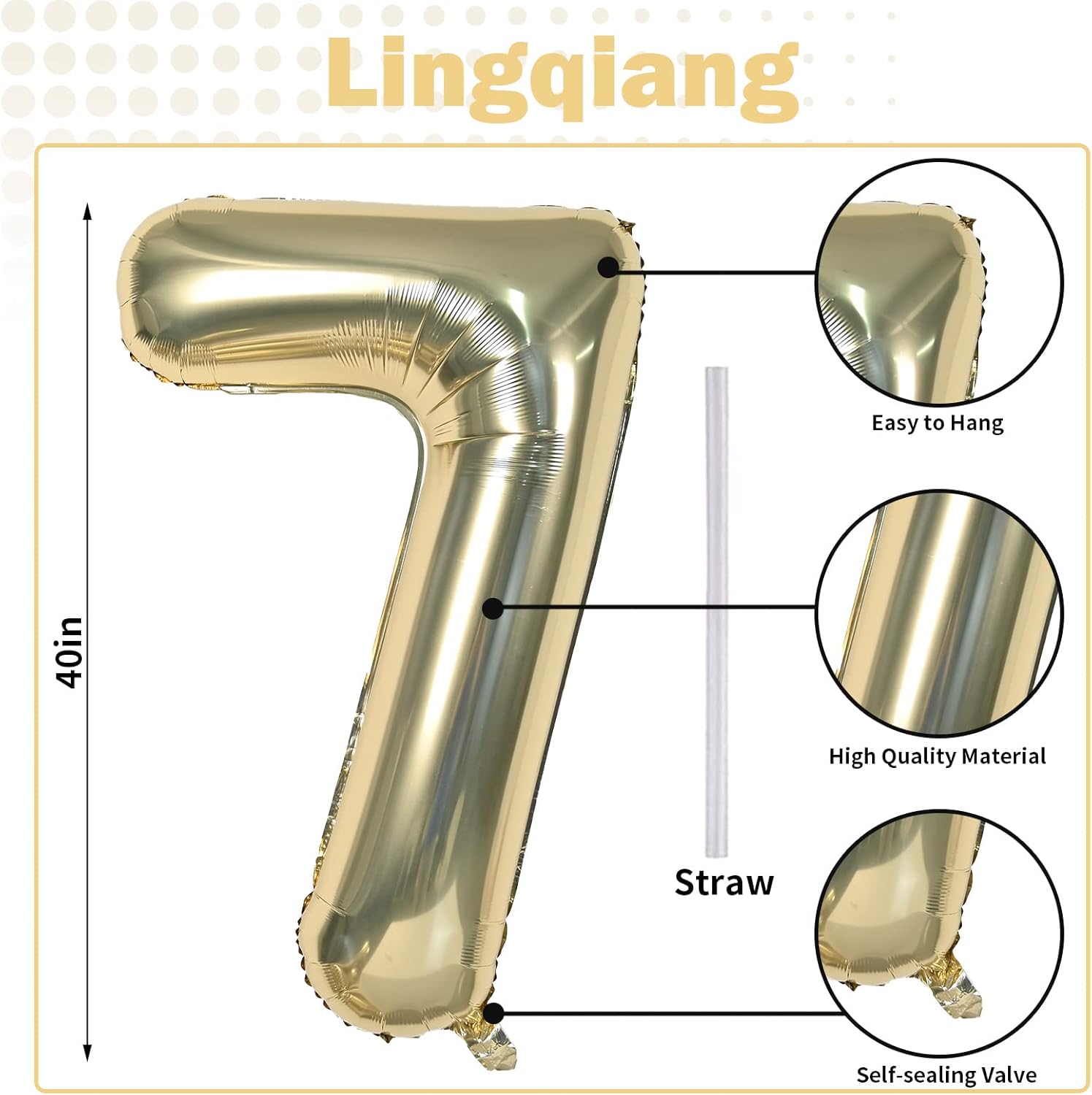 • πŸŽ‰Champagne Gold Number 7 Balloon πŸŽ‰ - You will get 1pc 40 inch mylar foil number 7 balloon and 1pc straw. Perfect for 7th 17th 27th 70th 75th birthday or anniversary party decorations supplies.
