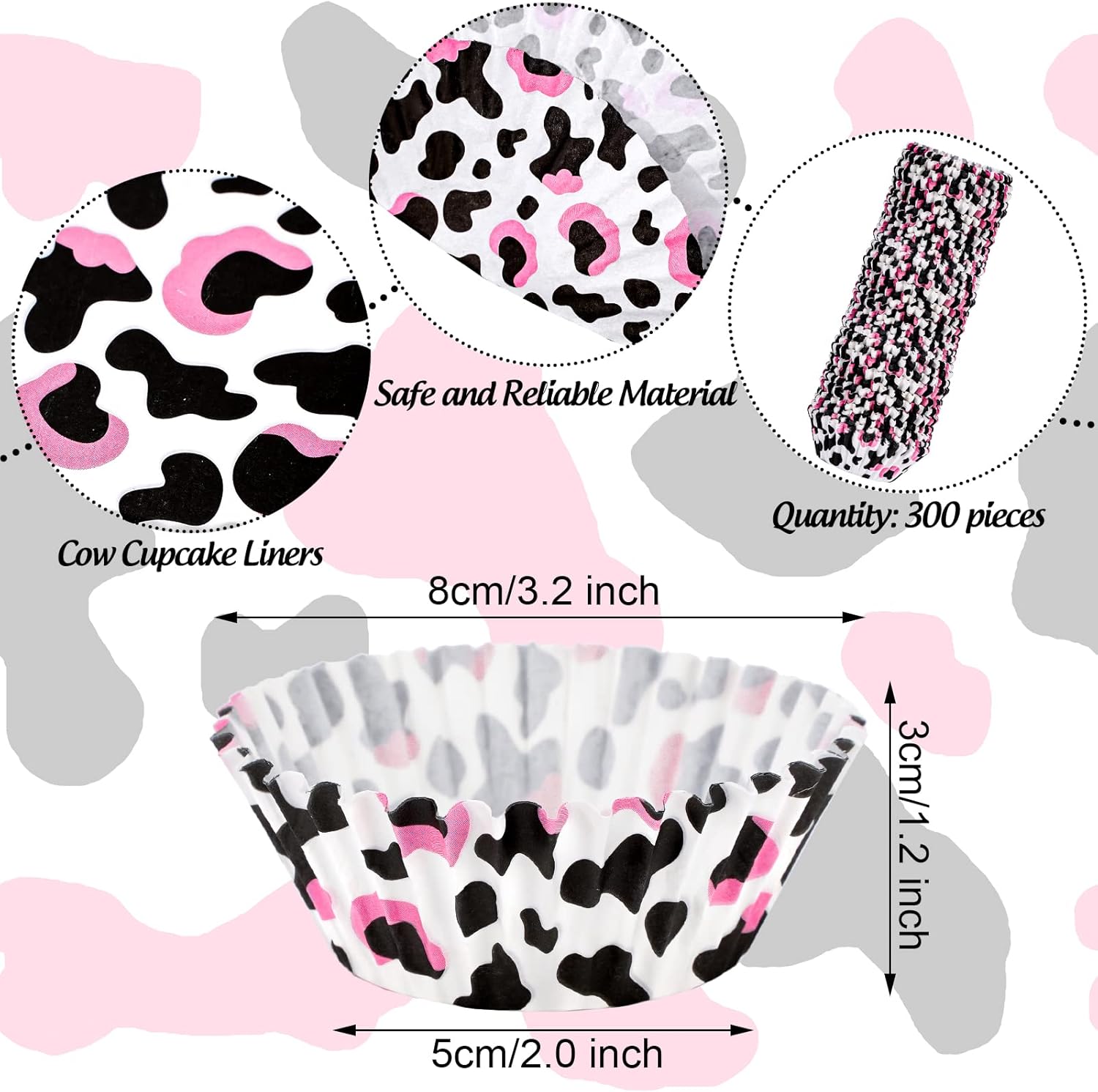 • Package Includes - You will receive totally 300 pieces of cow cupcake wrappers, large quantity can meet your replacement requirements and daily use.
