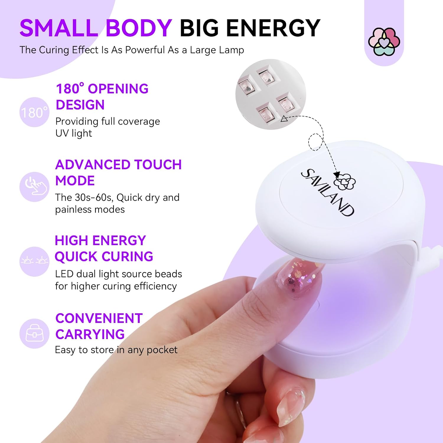 SAVILAND Quick-dry Builder Nail Gel Kit - Clear Pink Builder Hard Gel with Mini UV Light, Top Gels, Dehydrator, Non-acid PH Bond Primer and Nail Extension Application Tools for beginners