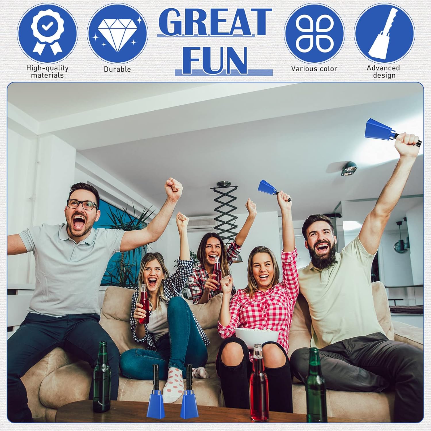 Pelopy 12 Pcs Large Cow Bell 9 '' Cowbell with Handle Cowbells for Sporting Events Hand Percussion Cheering Bell Chimes for Football Game, Alarm Loud Noise Makers, Musical Instrument(Blue)