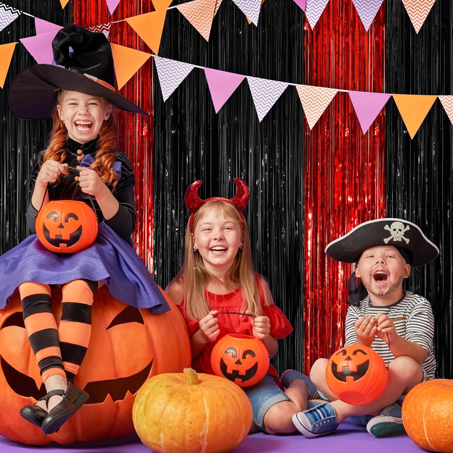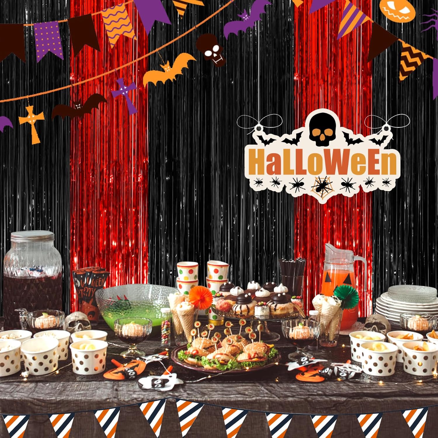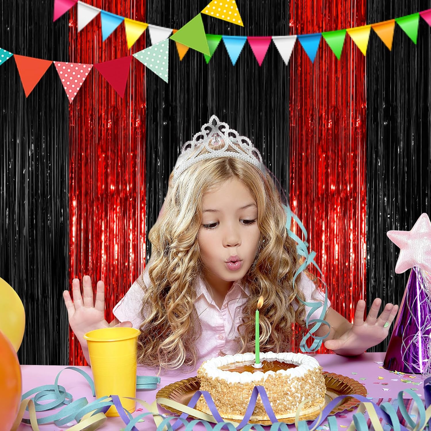 Black Red Fringe Curtain Party Streamers 2Pack 3.3 x 8.3 Ft Foil Fringe Backdrop Curtains for Birthday Wedding Bridal Baby Shower Holiday Tinsel Streamers Black Party Decorations Door Streamers