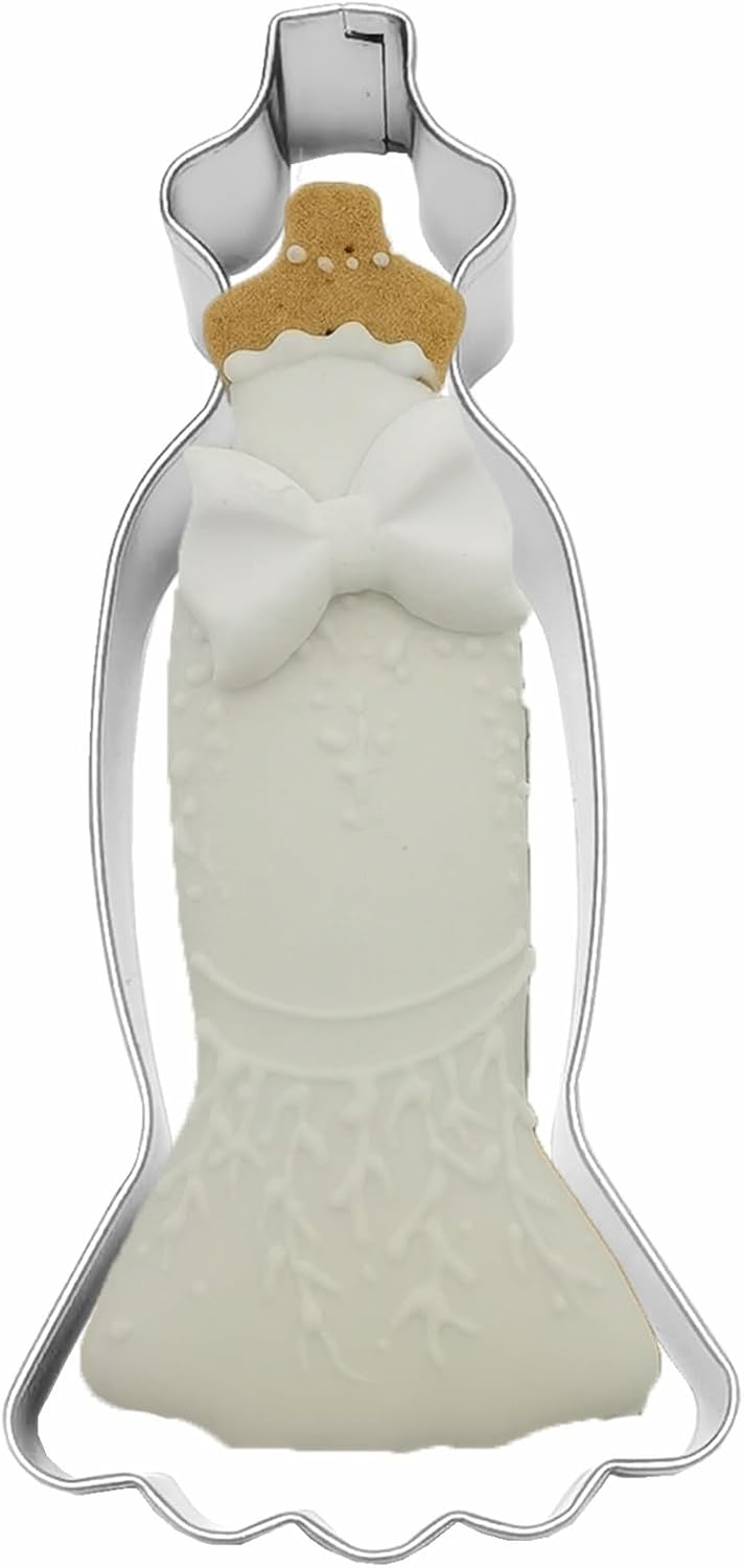• ★【1 PC OF LARGE SIZE DRESS COOKIE CUTTER】 - Stainless steel dress cookie DIY mold, wedding dress princess dress shape cookie cutting mold, pastry biscuit cake fondant mold baking DIY gift for women, reusable and durable. Have fun to making cookie with families together.