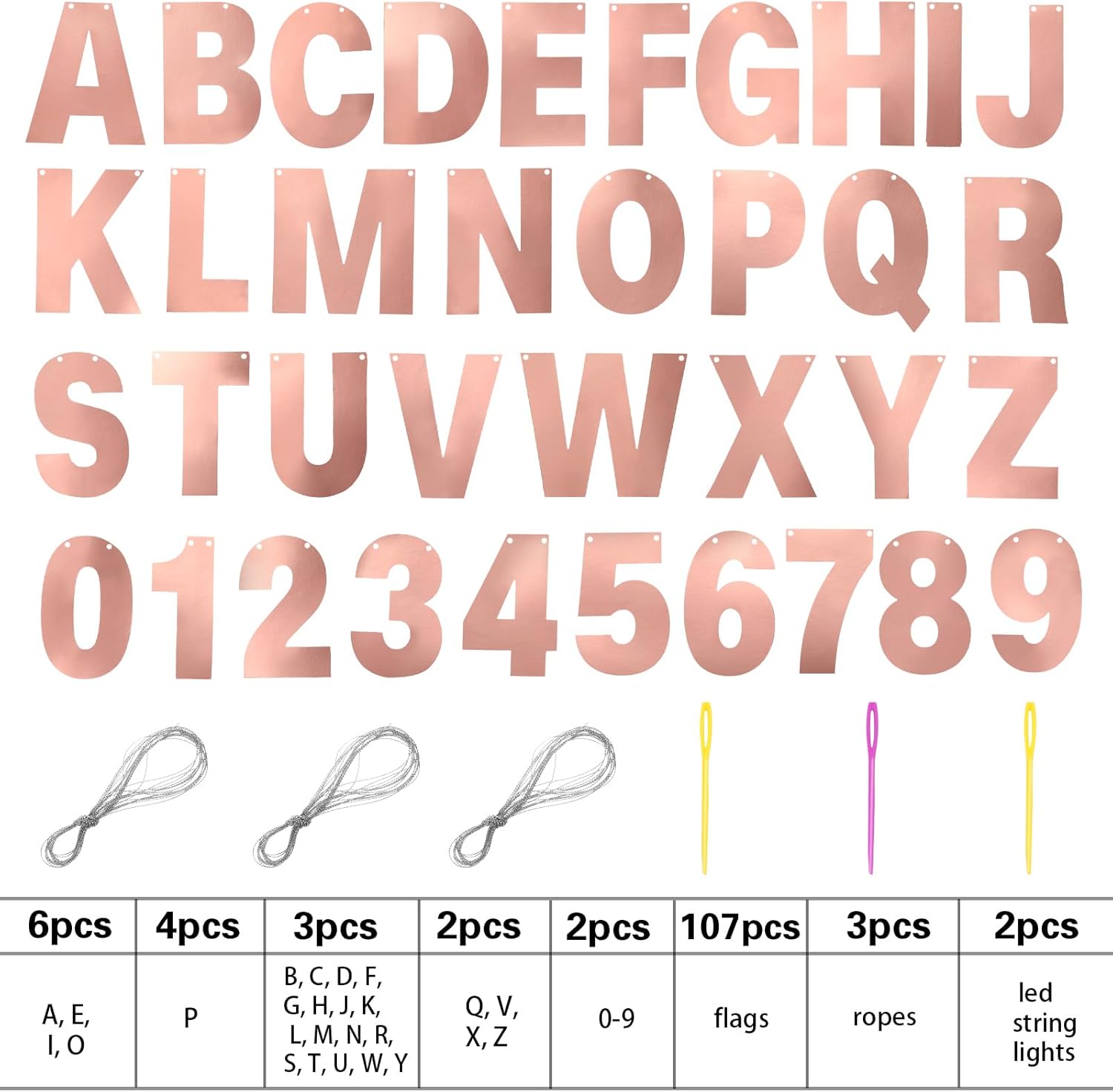 • DIY Banner Kit with Letters: you will get 107 pieces of letters and numbers, including 6 'A, E, I, O' letters, 4 'P' letters, 3 'B, C, D, G, H, J, K, L, letter M, N, R, S, T, U, letter W, Y, F shape' letters, 2 'Q, V, X, Z' letters and 2 '0-9' numbers, come with 3 ropes; Nice combination meet your various parties decorative demands