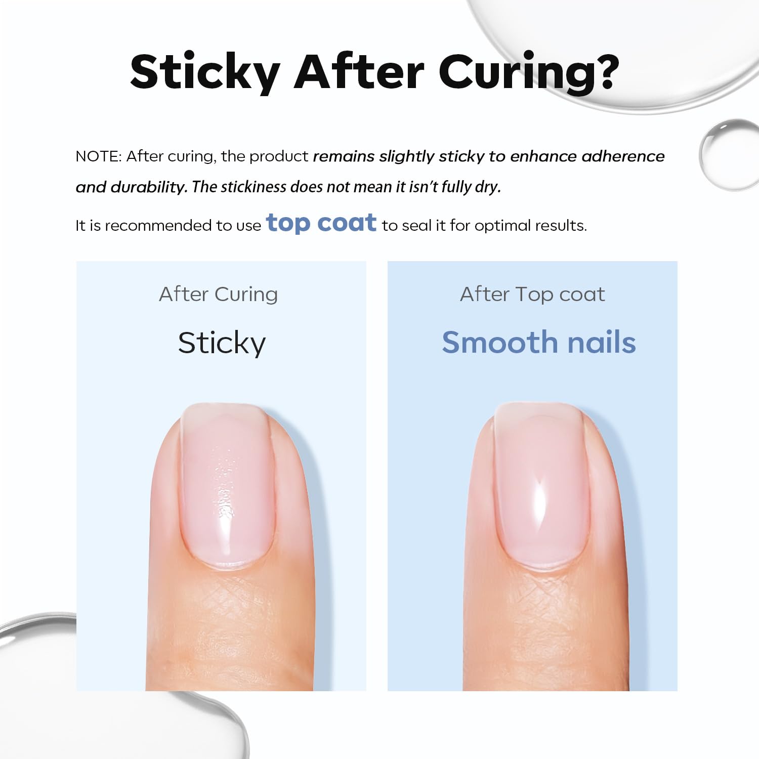 • Quick & Easy Application: High self-leveling formula along with built-in brush makes it easy to spread, help you create length, thickness or add strength to the nail you want, and ensure a smooth and natural nail foundation layer with impeccable shine. NOTE: It is normal for builder nail gel to remain a little sticky after curing, which will make a better adhesion between nails and gel layers. It is recommended to use top coat to seal it