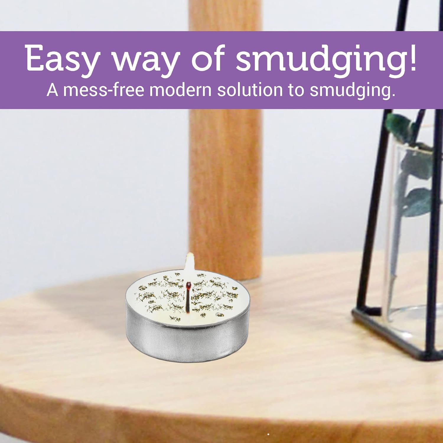 SOUL STICKS 12 Pack Little Smudgies Tealight Candles Smudge Candle for Cleansing House, Meditation, Chakra Healing | Made with Crystals and Herbs (White Sage & Lavender)