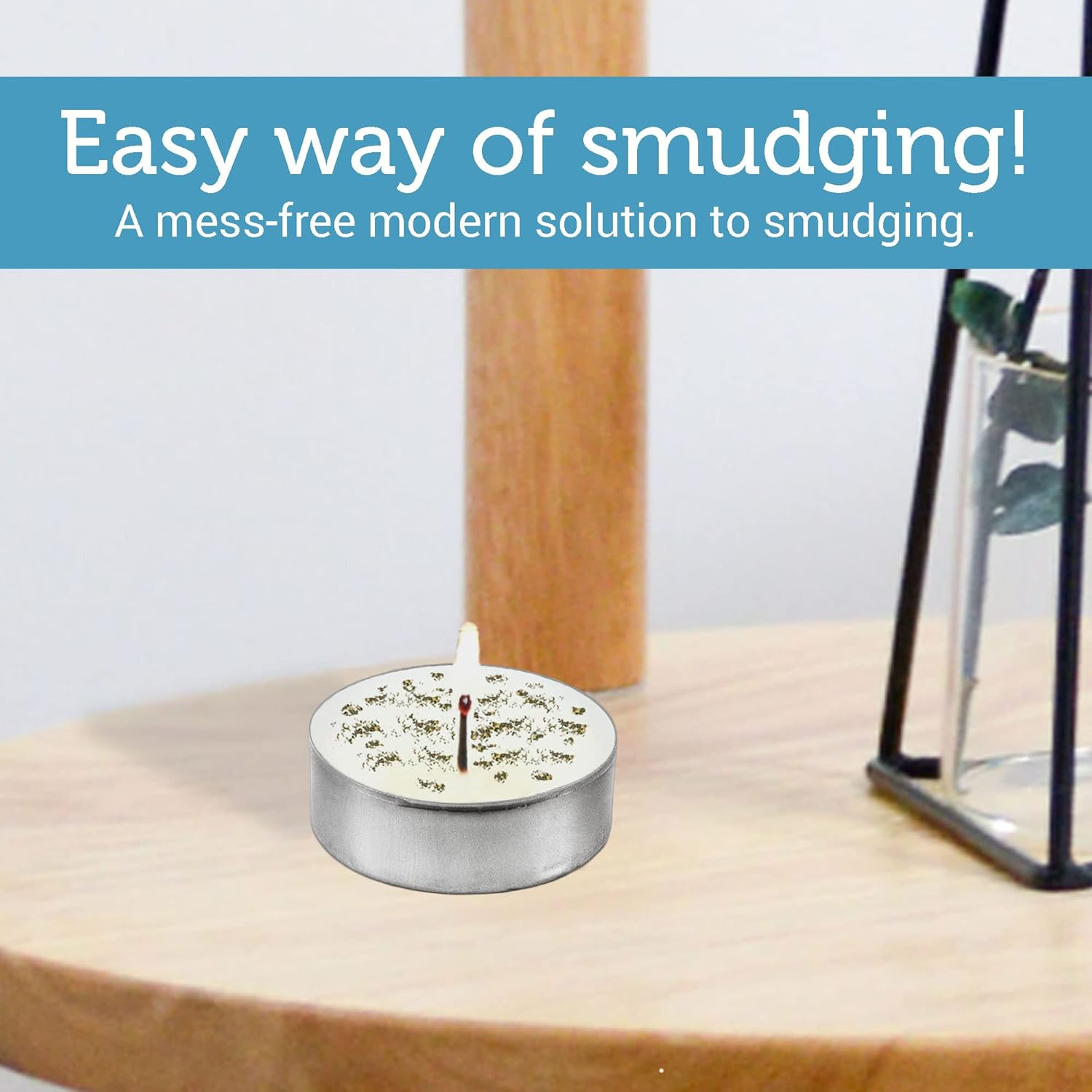 SOUL STICKS 12 Pack Little Smudgies Tealight Candles Smudge Candle for Cleansing House, Meditation, Chakra Healing | Made with Crystals and Herbs (White Sage)