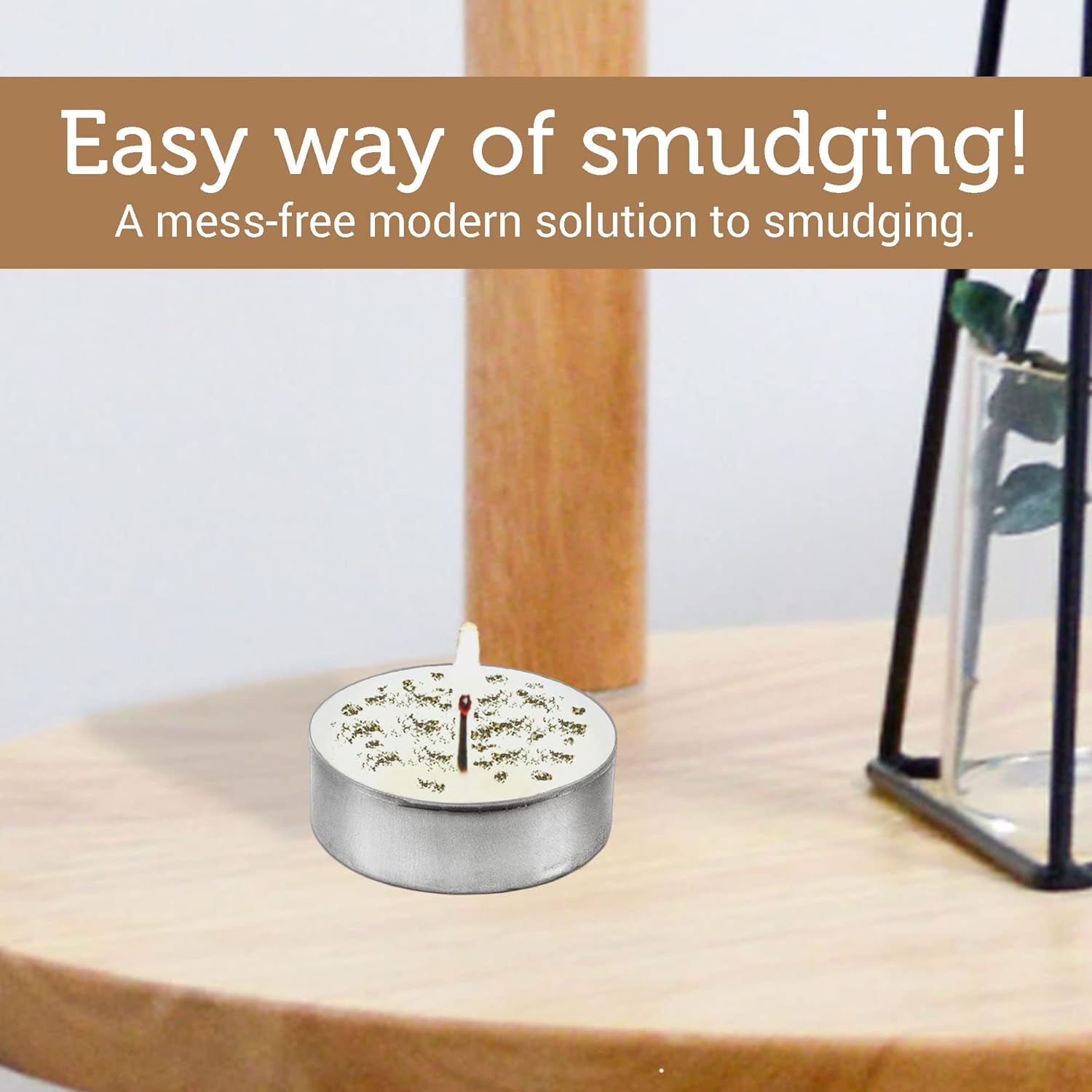 SOUL STICKS 12 Pack Little Smudgies Tealight Candles Smudge Candle for Cleansing House, Meditation, Chakra Healing | Made with Crystals and Herbs (White Sage & Cinnamon)