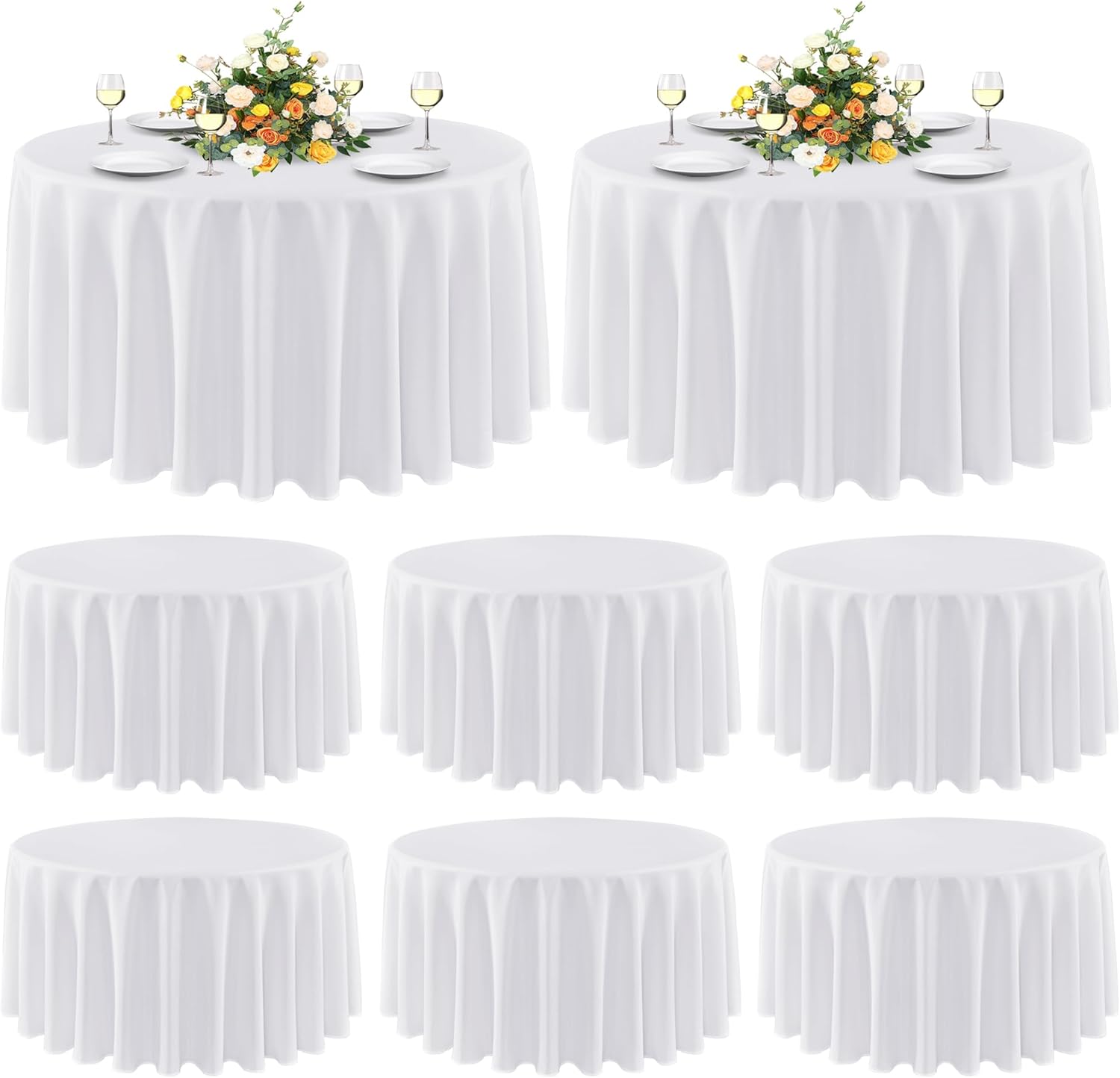 sancua 8 Pack Round Tablecloth 90 Inch White, Stain and Wrinkle Resistant Table Cloth - Washable Polyester Table Cover for Dining Tables, Buffet Parties and Camping