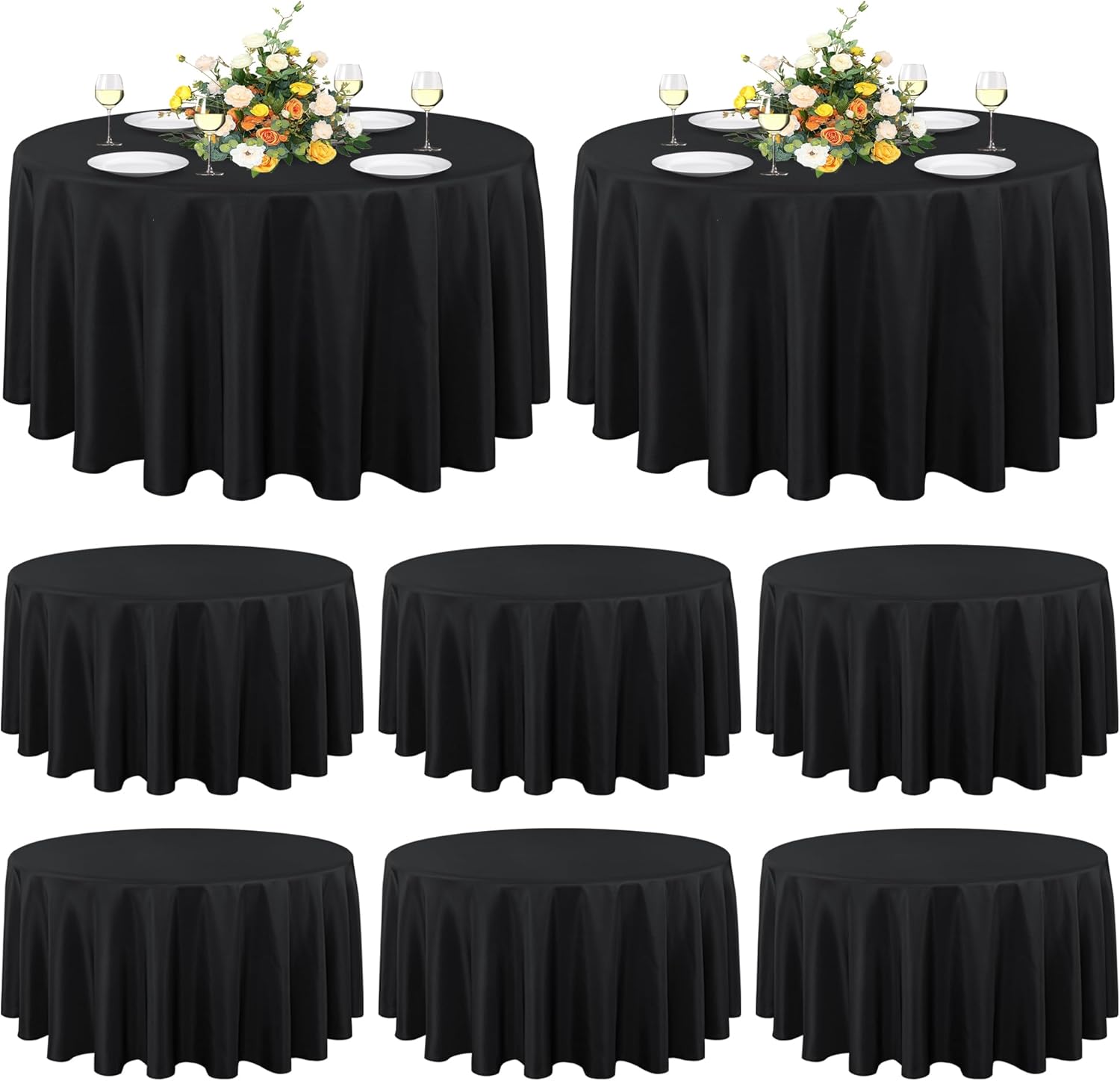 sancua 8 Pack Round Tablecloth 90 Inch Black, Stain and Wrinkle Resistant Table Cloth - Washable Polyester Table Cover for Dining Tables, Buffet Parties and Camping