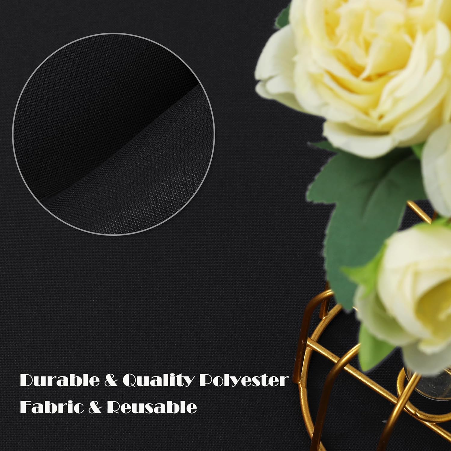 • MEASUREMENTS: This black round table cloth size is 90 inch round, ideal for standard 6FT(72 inch) round tables, providing 9 inch drop, or 15 inch drop if your round table is 5FT(60 inch).