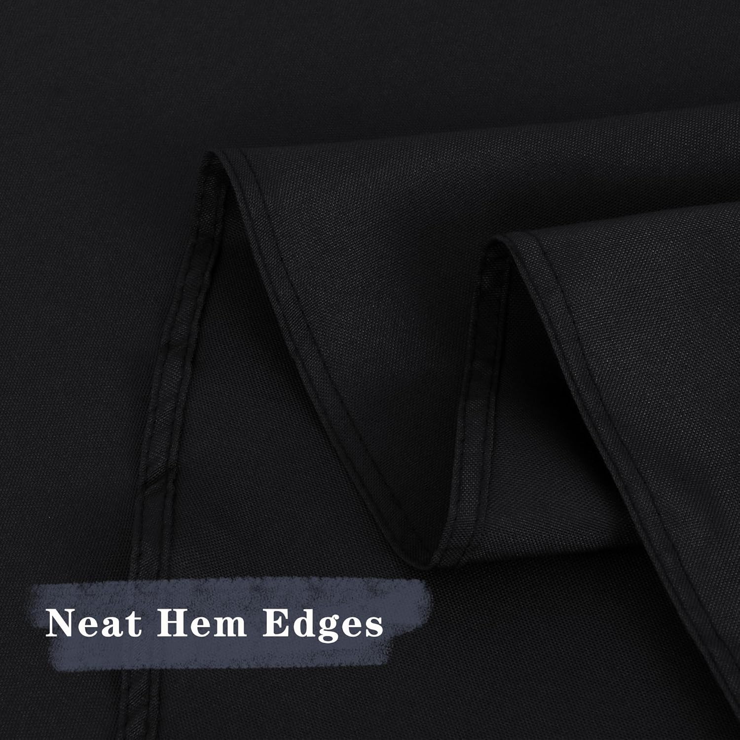 • MEASUREMENTS: This black round table cloth size is 108 inch round, ideal for standard 6FT(72 inch) round tables, providing 18 inch drop, or 24 inch drop if your round table is 5FT(60 inch).
