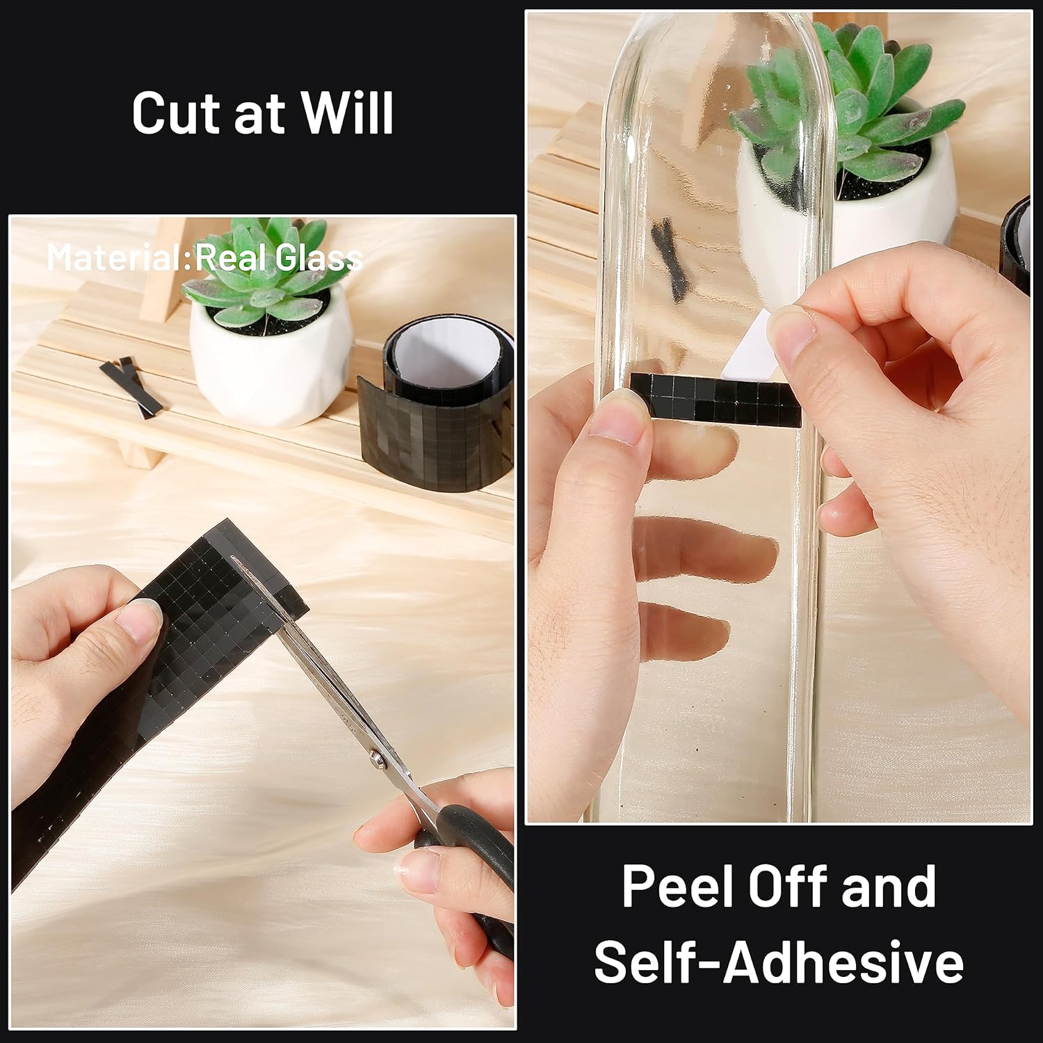 • Black Color Design: These adhesive mirror tiles are very flexible, easy to cut and attach to objects. Black mirror design looks very cool and mysterious, the special color design lets your crafts more fashionable