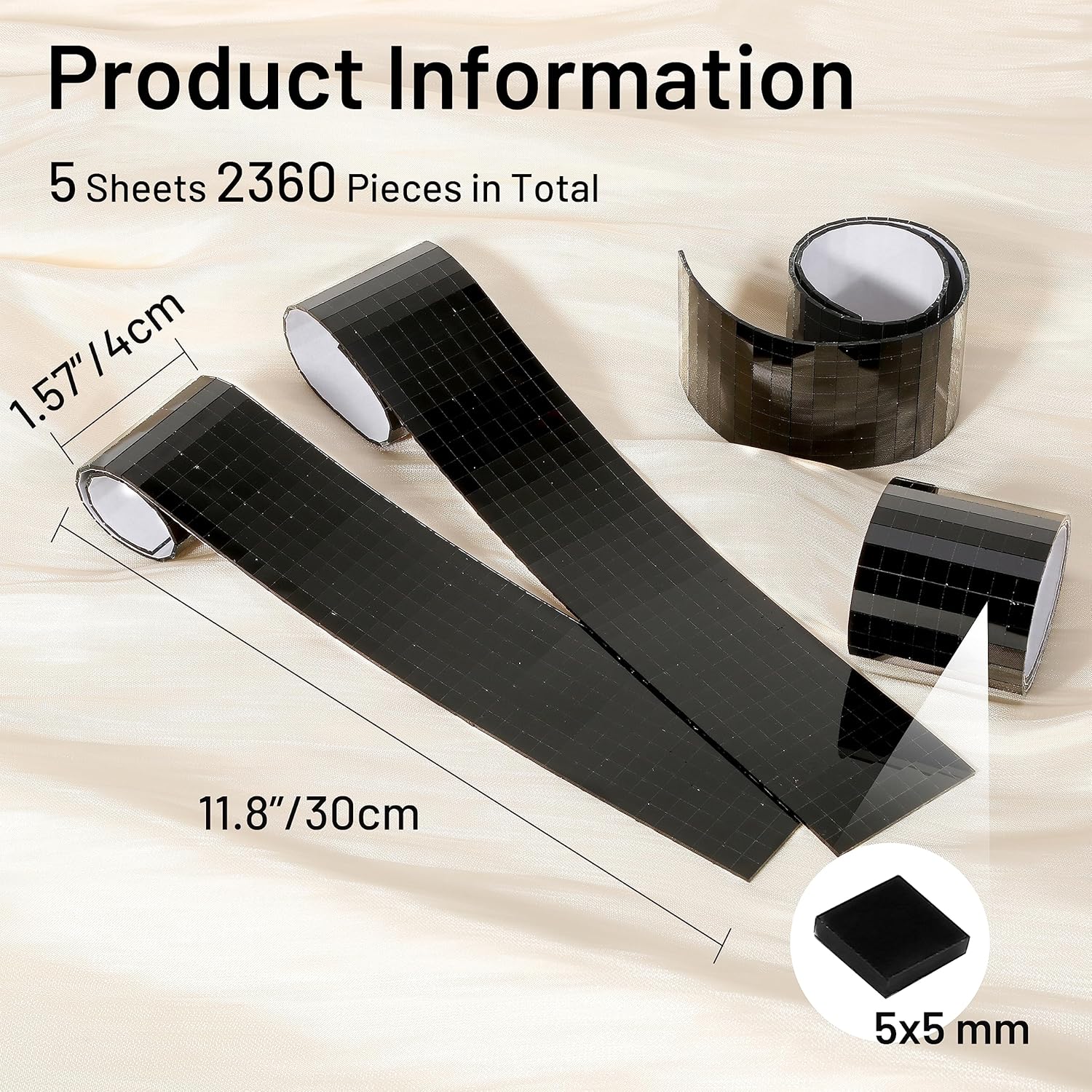 PP OPOUNT 2360 PCS Disco Tiles, 5 x 5 mm Self-Adhesive Disco Ball Stickers, Real Glass Mirror Tiles for Crafts, DIY Disco Ball, Photo Frame, Art Collage, Indoor Decor (Black)