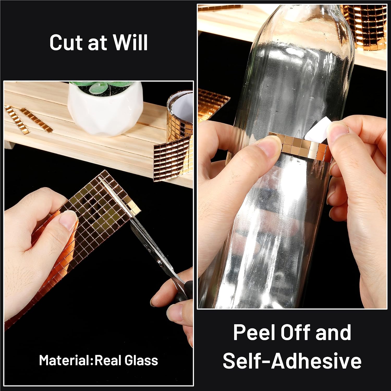 • Luxury Gold Color Design: These self adhesive tiles are very flexible, easy to cut and attach to objects. Luxury gold mirror design looks very soft and pure, the warm and comfortable color lets your crafts more fashionable