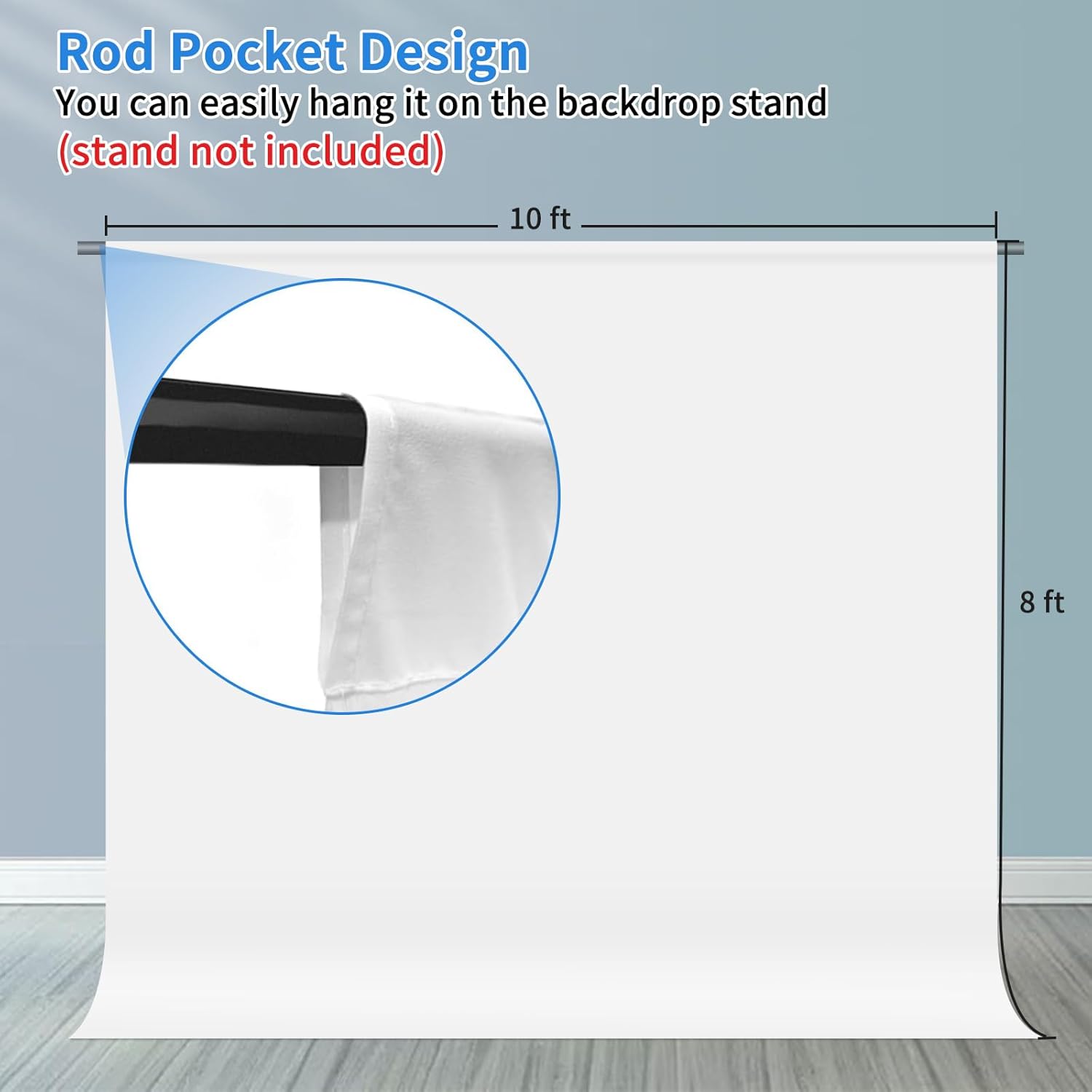 • Easy Setup & Care: Features a convenient rod pocket (on the 10ft side) for quick mounting on any backdrop stand. (Note: Stand not included). ⚠️ To ensure a flawless look, simply use a steam iron to remove wrinkles from shipping folds before first use