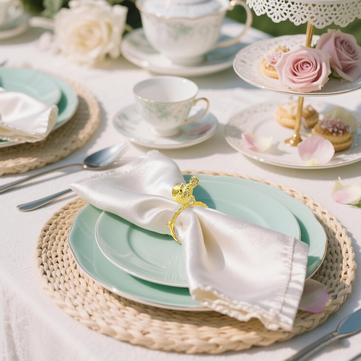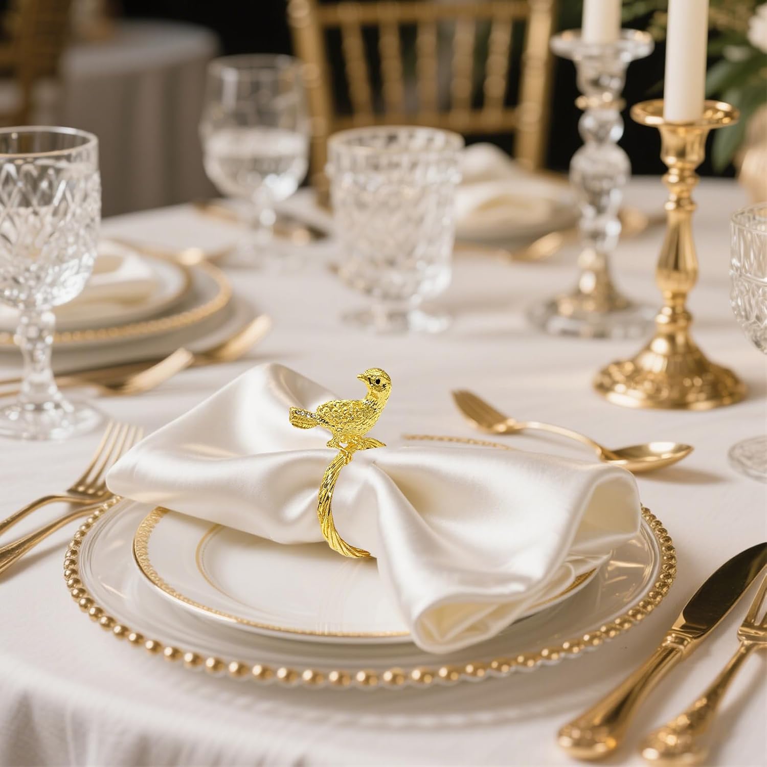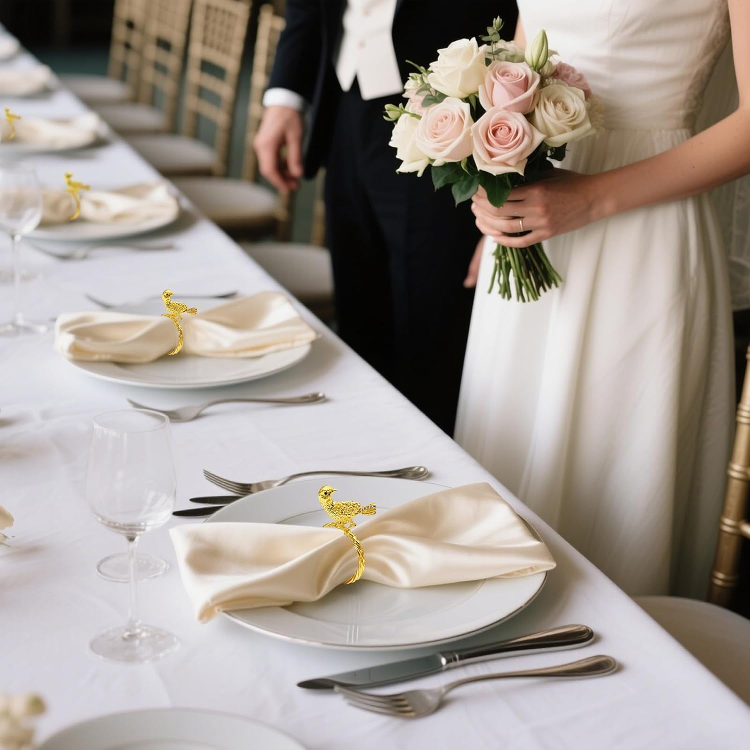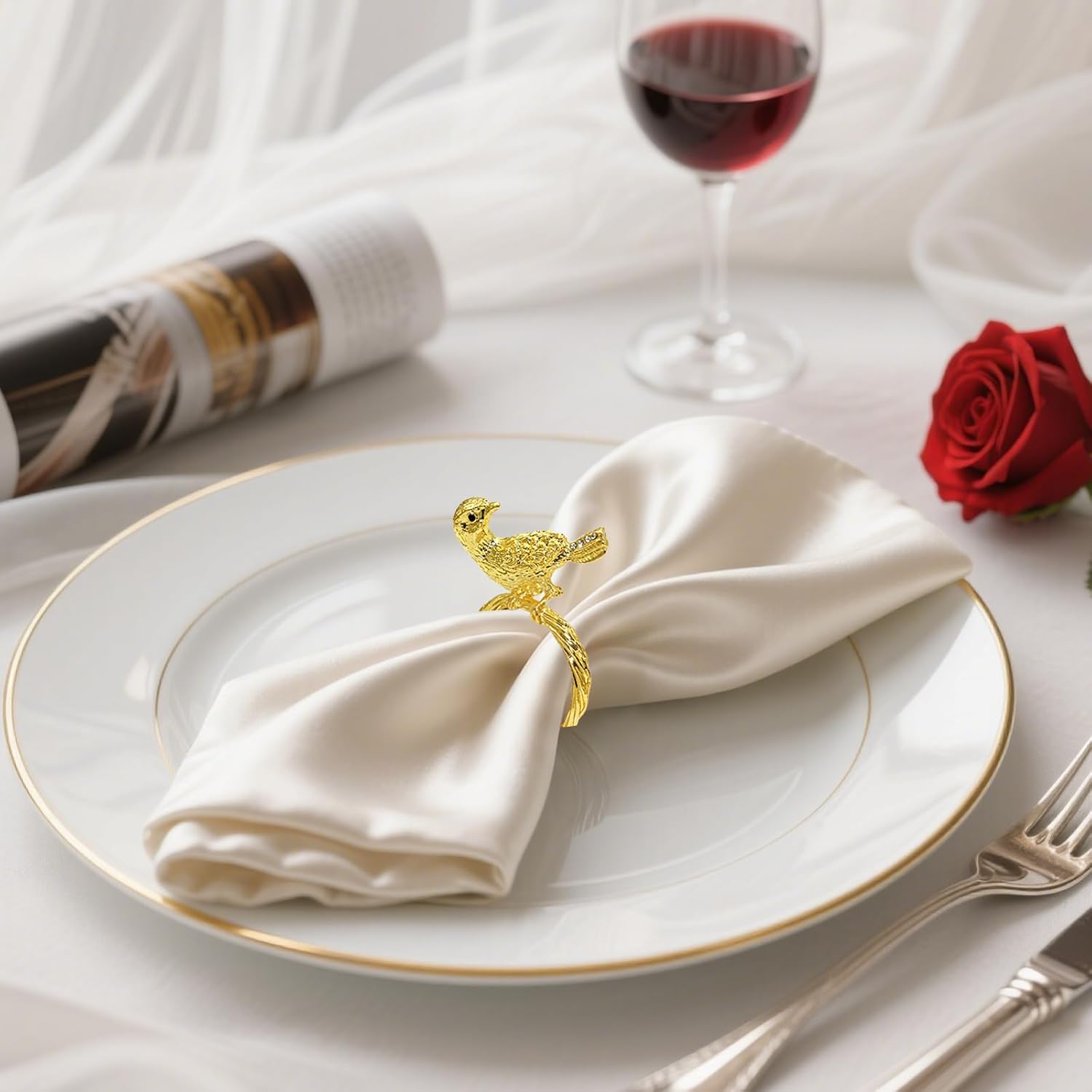 • 🌟 Napkin Rings set of 8 for Dining Table Decor: Total of 8pcs napkin rings are in the package of this gold napkin rings set,Pair standing bird Napkin Rings with flower table accessories to create farmhouse-themed table decoration for daily,the gold napkin ring holders is suitable as metal napkin holders for cloth napkins or rustic napkin rings for home dining table decor