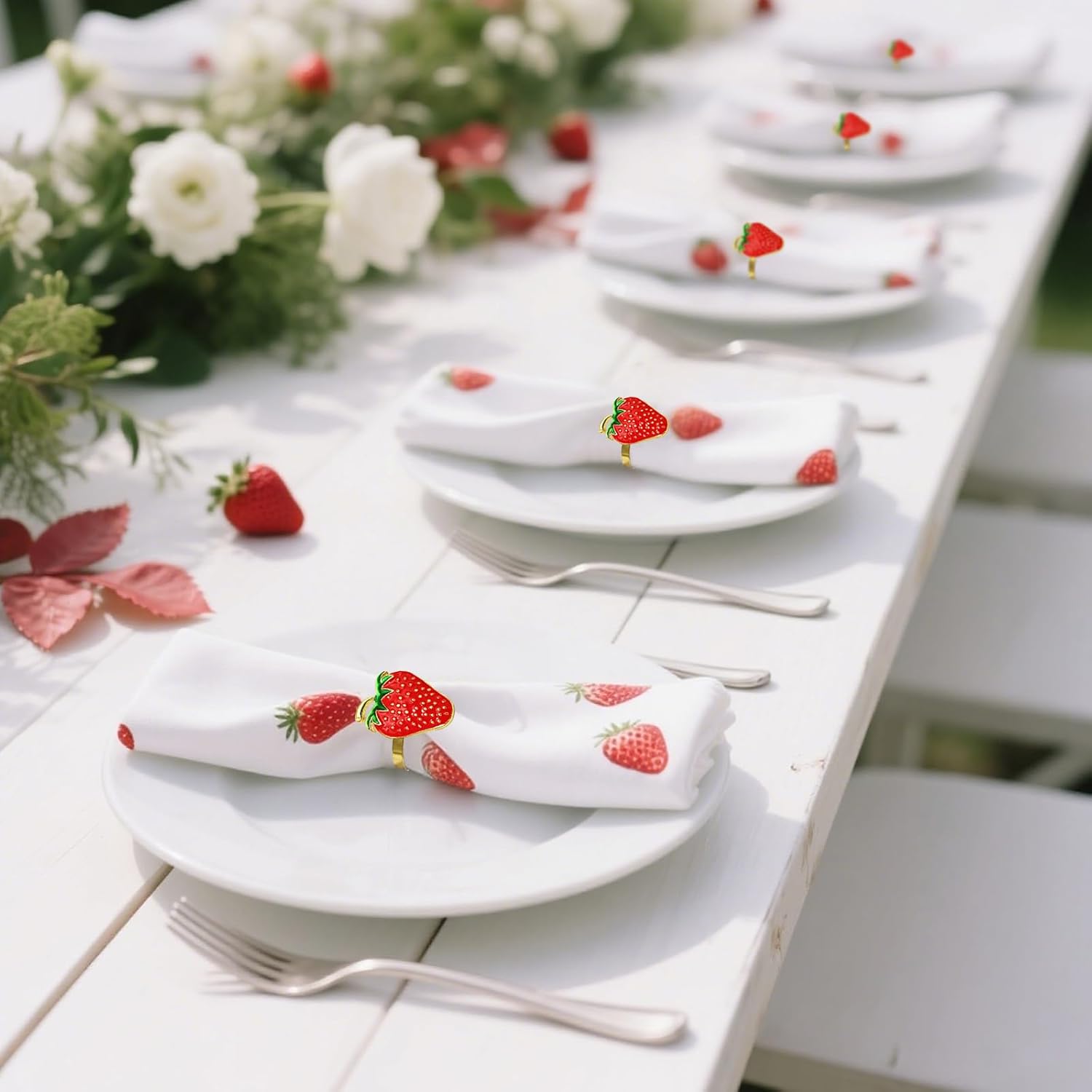 • Napkin Rings set of 8 for Home Dining Table Decor Total of 8 pcs napkin rings are in the package of this gold napkin rings set,Pair strawberry napkin rings with fruit napkins to create farmhouse table decor for daily,the red fruit napkin rings is suitable as fall napkin rings or rustic napkin ring holders for beach or garden wedding dining table decor