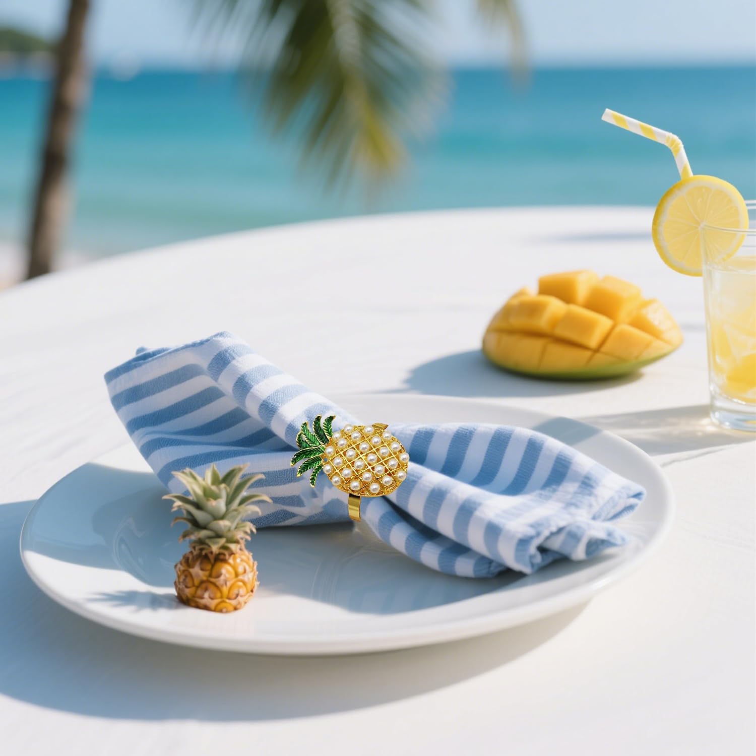 Napkin Rings Set of 8 Pearl Pineapple Napkin Rings for Napkins,Gold Napkin Holders for Cloth Napkins,Summer Napkin Ring for Farmhouse Dining Table Decor,Rustic Fruit Napkin Ring Holders