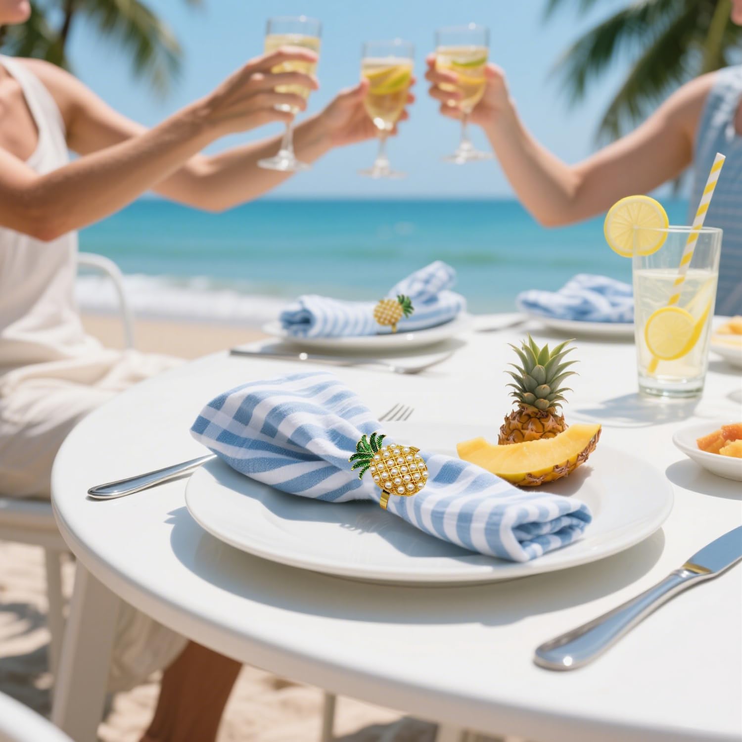 • 🌟 Napkin Rings set of 8 for Dining Table Decor: Total of 8pcs napkin rings are in the package of this napkin rings set,Pair Pineapple Napkin Rings with tropical table accessories to create farmhouse-themed table decoration for daily,the gold napkin rings is suitable as fruit napkin holders for cloth napkins or rustic napkin ring holders for home dining table decor
