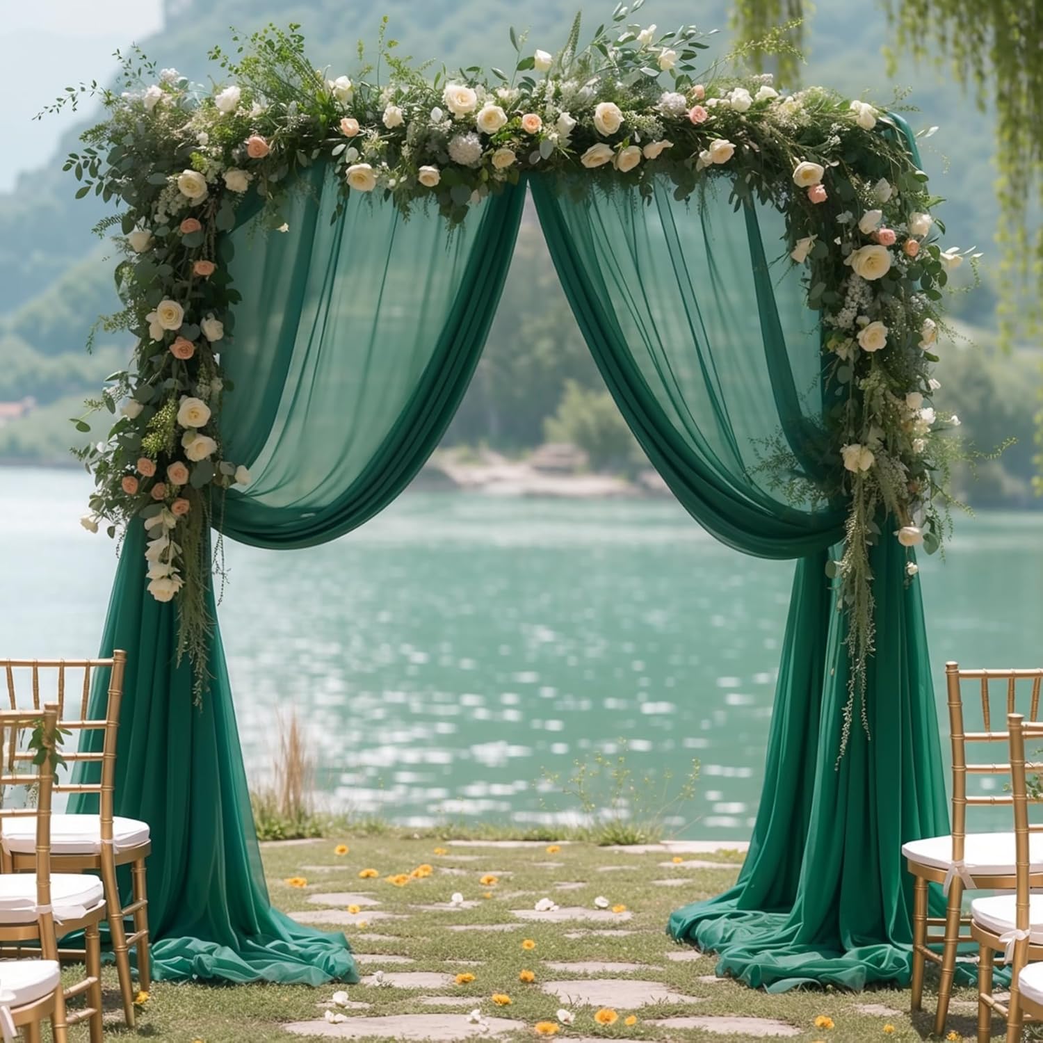 Wedding Arch Draping Fabric, 1 Panel 28" x 19Ft Emerald Green Arch Drapes Sheer Backdrop Curtain for Wedding Ceremony Party Ceiling Decor