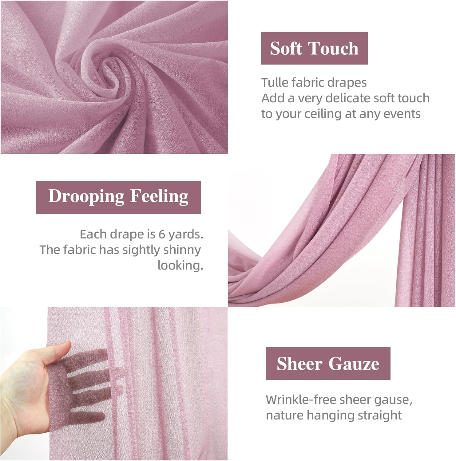 Wedding Arch Draping Fabric, 2 Panels 28" x 19Ft Dusty Rose Arch Drapes Sheer Backdrop Curtain for Wedding Ceremony Party Ceiling Decor