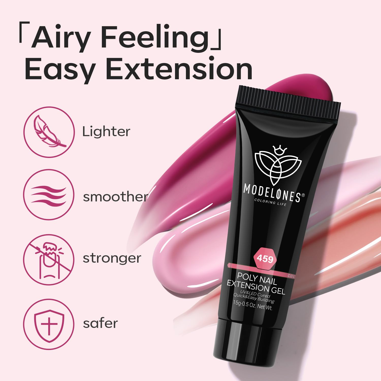 • 【Long-Lasting Result】:Using Modelones poly nail gel kit with u v light to create durable nails and stay on well up to 3 weeks without chipping or lifting. For better adhesion, we advices proper nail preparation (filing, buffering, and cleaning) and apply nail dehydrator and primer.Modelones poly nail gel adopt healthy formula,11-toxin free ,no harm to nails bed safer for nail extension, nail strengthen,nail enhacement,apex building ,etc