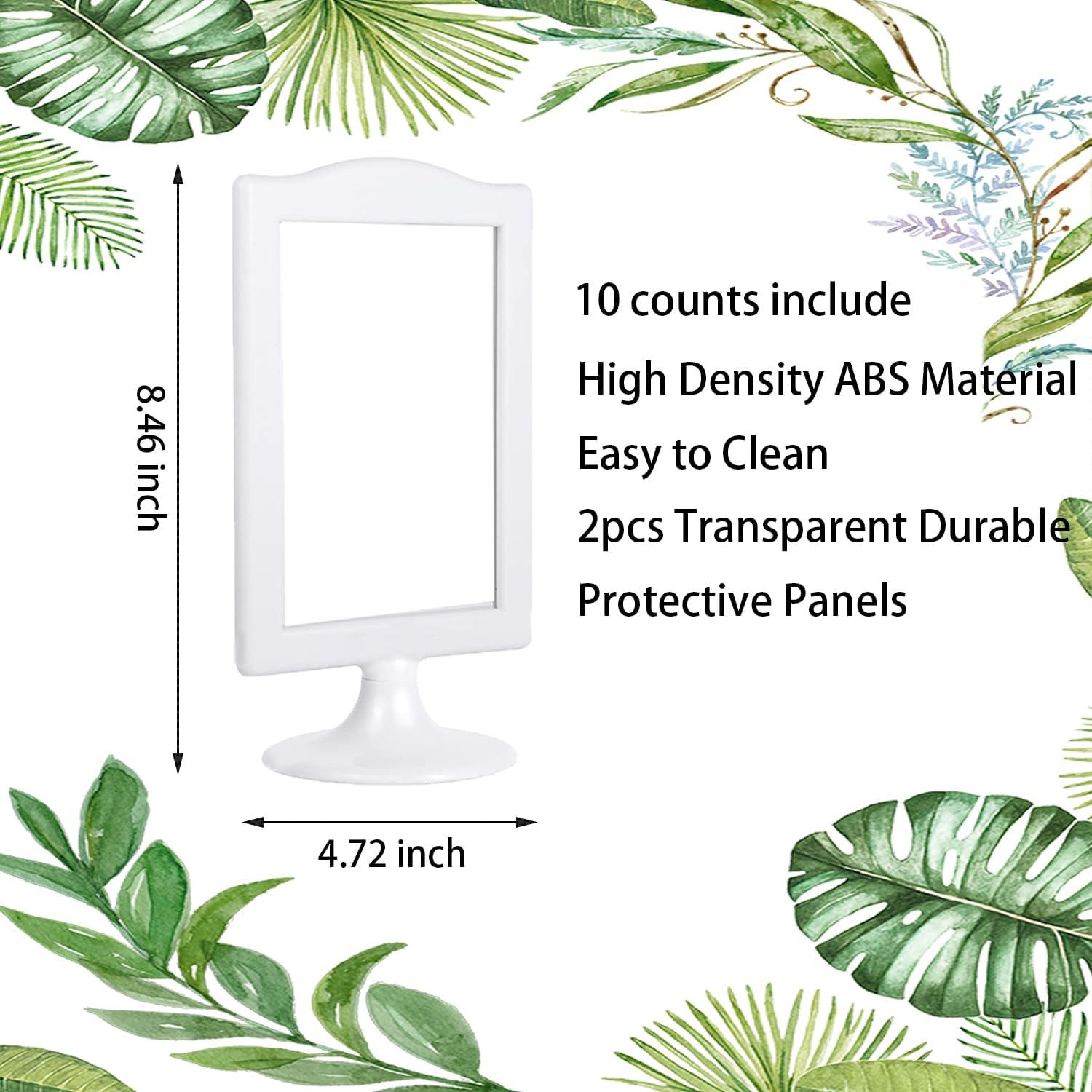 NahNah Double Sided Standing Picture Frames - (White, 10 Count) 4x6 Inch, Plastic Pedestal Photo Frame with Inserts and Base - 2 Sided Tabletop Vertical Display Frame for Wedding Table Bridal