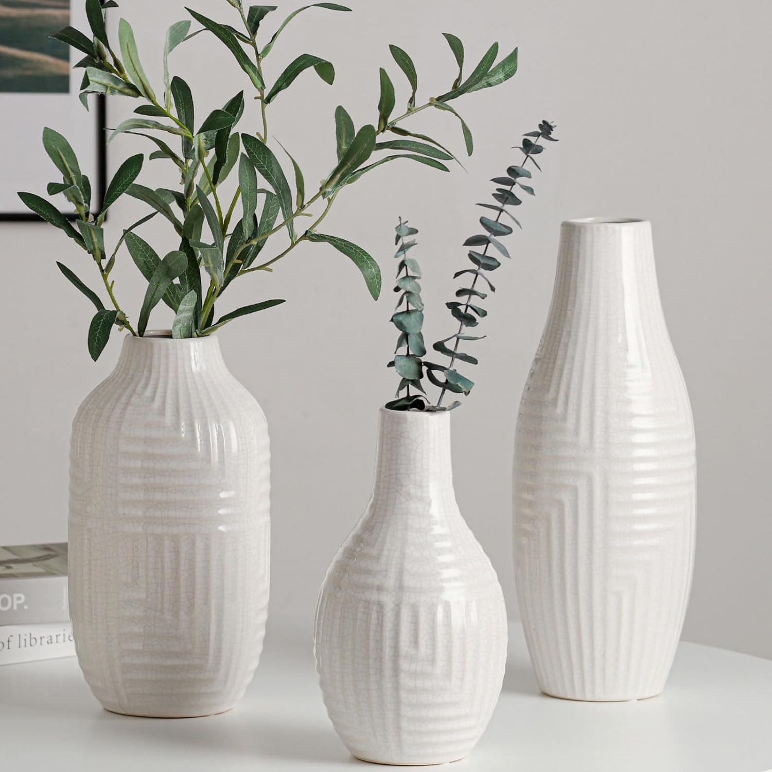hjn hjn White Vase -Ceramic Vase for Home Decor, Modern Decor Vases for Living Room/Bookshelf/Mantel/Home Decor Accents -13.8" H