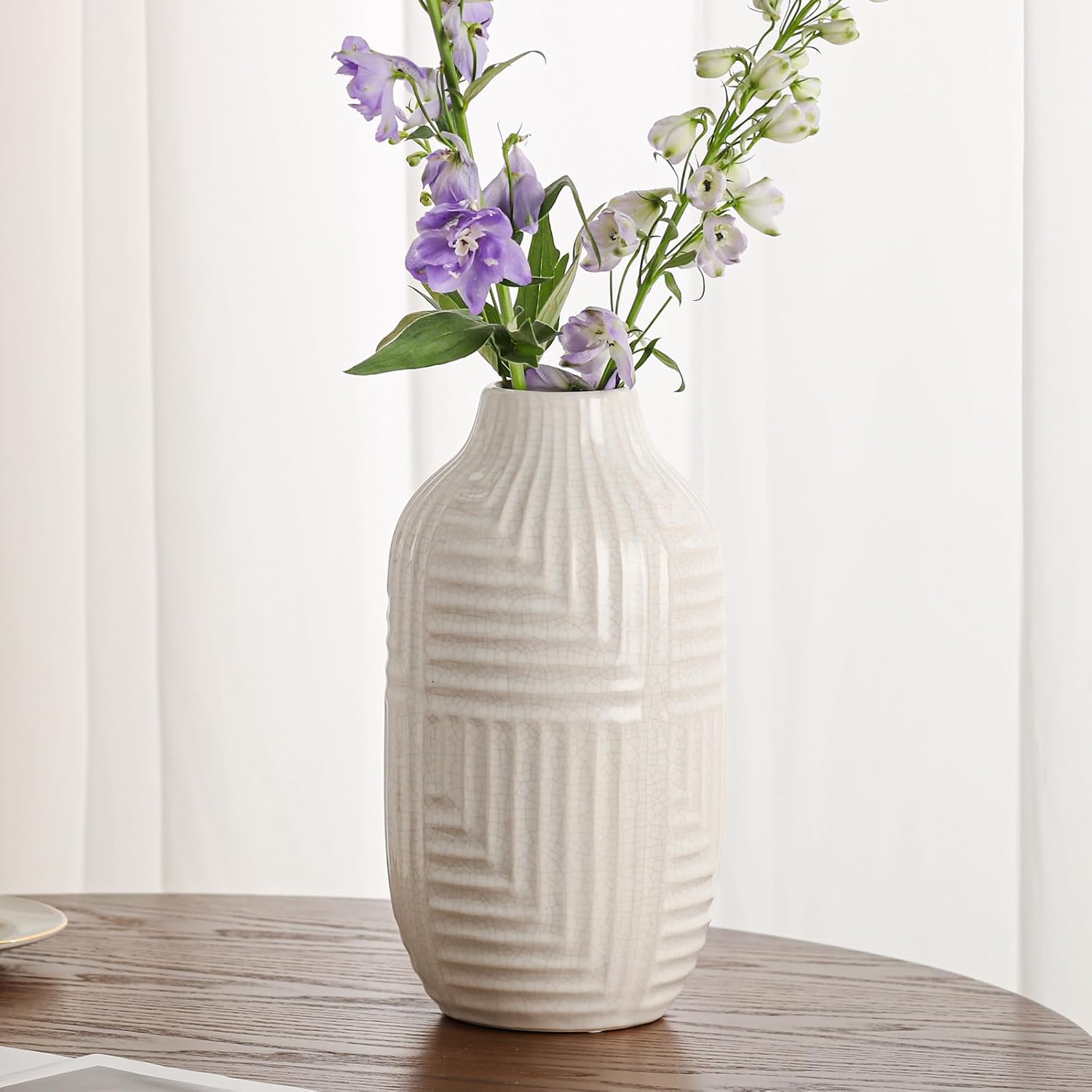 hjn White Ceramic Vase for Home Decor - Modern Vases for Living Room/Bookshelf/Mantel - 10.6" H