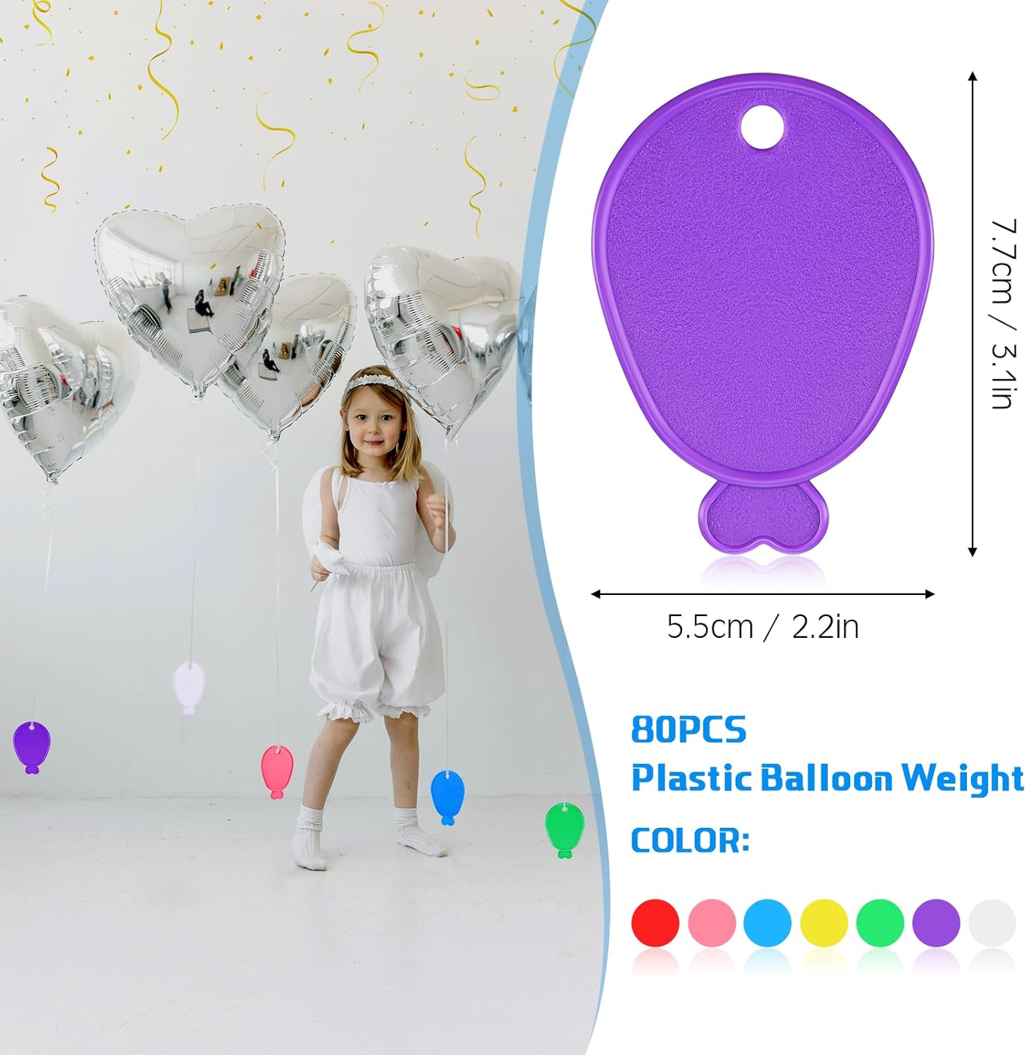 Lenwen 80 Pcs Balloon Weights Plastic Colorful Weights for Balloons for Birthday Party Decoration Wedding Holiday Celebration(Balloon Shaped,Rainbow)