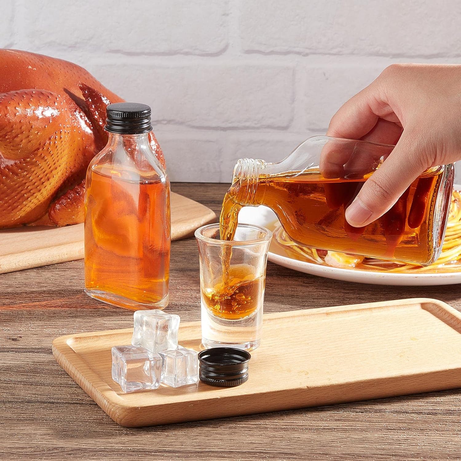 • Nice Kitchen Tools: these small glass bottles have enough capacity, not only suitable for alcohol, liquor, whiskey, but also nice for you to dispense of juices, essential oils and more, bringing more convenience for your life