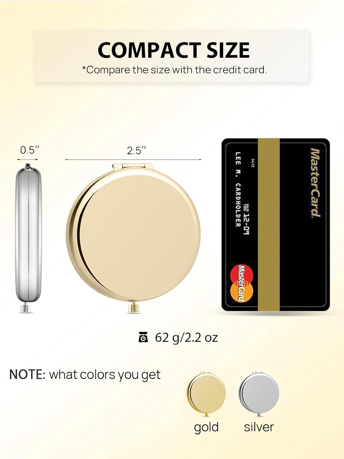 • PORTABLE SIZE & 2 DIFFERENT COLORS SET: Small mirror that is only 2.5 inches in diameter. Fits nicely in your bag, purse, or even your pocket. Experience the luxury of gold and the sophistication of silver(1 piece per color) from the compact mirror set