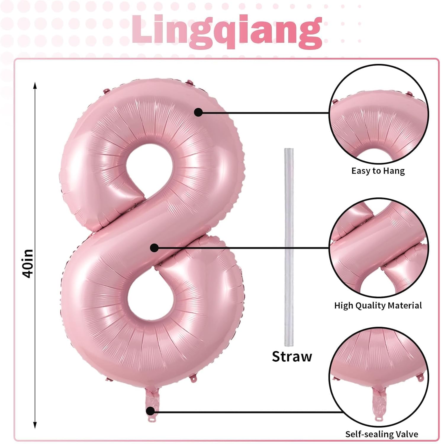• πŸŽ‰ Pastel Pink Number 8 Balloon πŸŽ‰ - You will get 1pc 40 inch mylar foil number 8 balloon and 1pc straw. Perfect for 8th 18th 28th 80th 85th birthday or anniversary party decorations supplies.