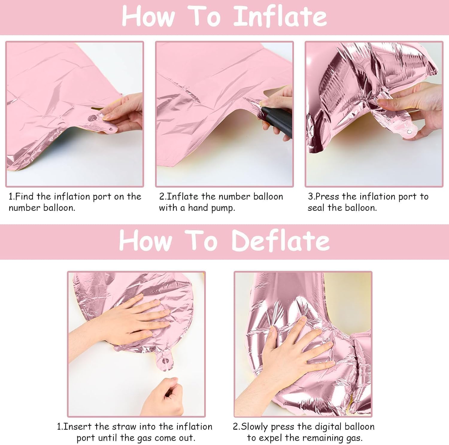 • πŸŽ‰ Repeated Use πŸŽ‰ - The pastel pink number 7 balloons set contains a straw that can be used to deflate the foil balloon, simply insert the straw into the valve and press gently until the gas is completely expelled. After use, it can be folded and stored for reuse.