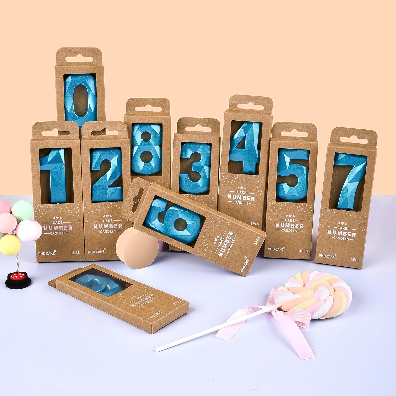 PHD CAKE 2.76 Inch Crystal Blue 9 Number Birthday Candles, Blue Number Candles, Cake Number Candles, Party Celebration