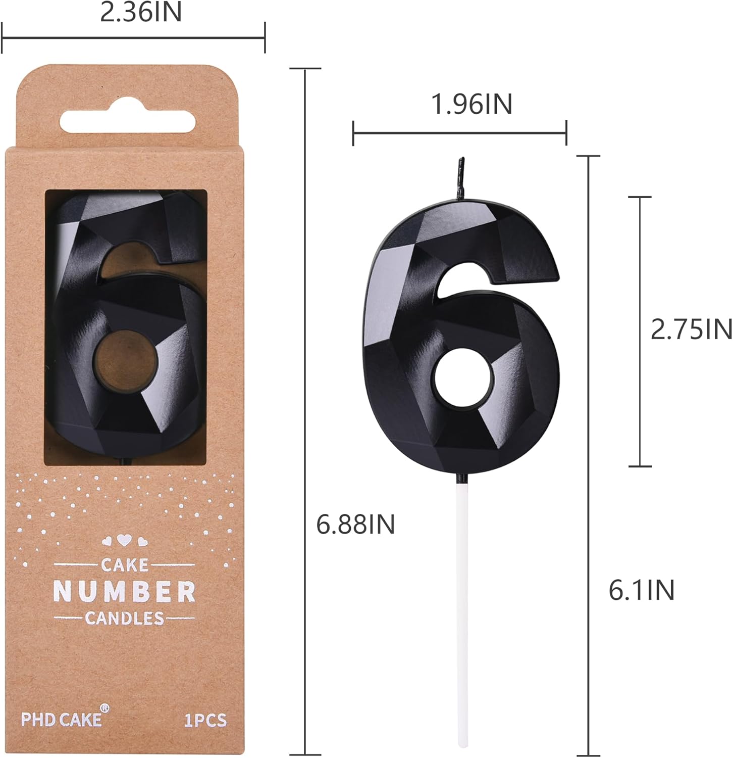 • New: 2.76 Inch Large Crystal Black 6 Number Birthday Candle designed to make your cake and birthday a unique and truly inspiring event.