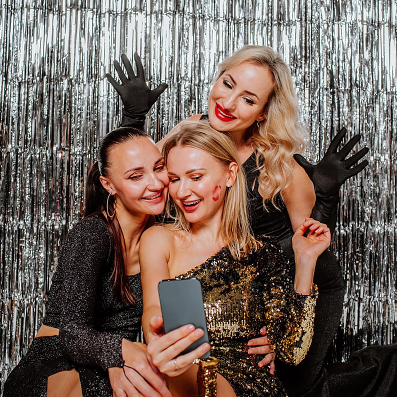 • Material: The metallic tinsel backdrop is made of tinsel with shiny surface, durable material can be reused. Good for adding sparkle as decorations for parties.