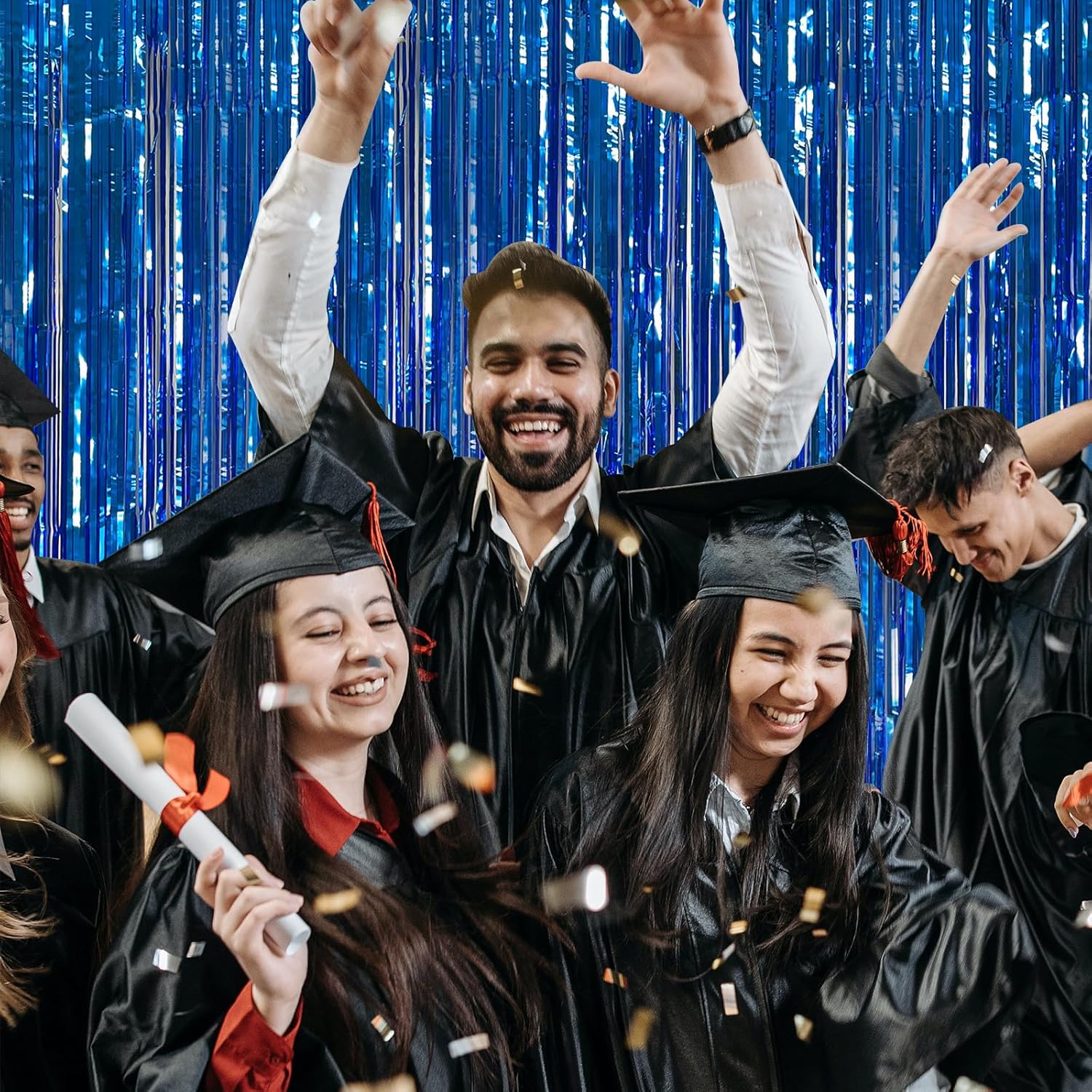 20 Pack Foil Curtain Backdrop Blue Metallic Tinsel Foil Fringe Curtains Photo Booth Props for Birthday Wedding Engagement Baby Shower Bachelorette Christmas Holiday Celebration Party Decorations