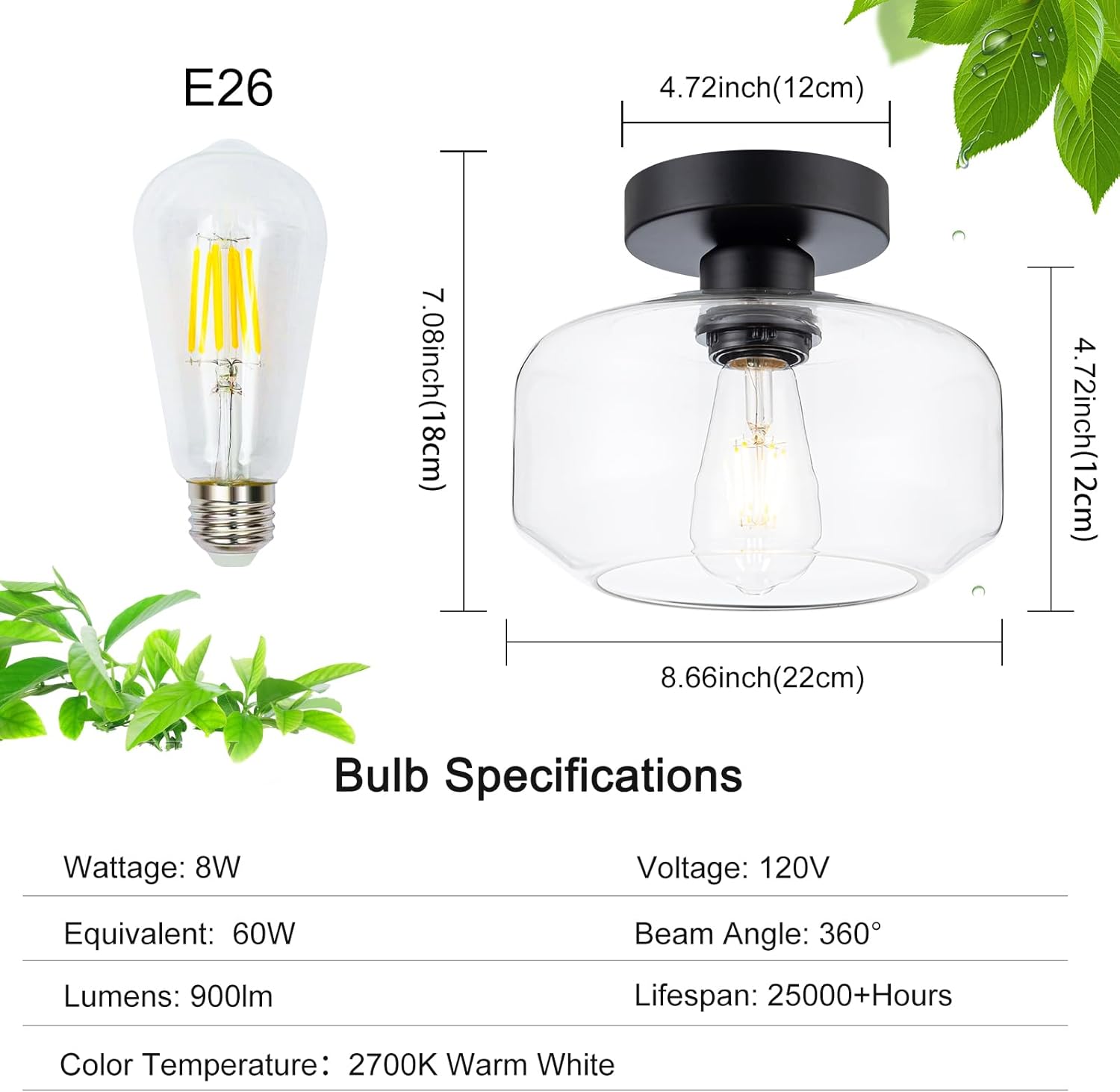• 2. 【Bright & Energy-Efficient】 Includes a 900-lumen LED bulb (2700K warm white) that emits soft, eye-friendly light—ideal for bedrooms, living rooms, or hallway ceiling lights. No need to buy a separate bulb! The Edison-style filament creates a cozy, nostalgic ambiance, while the energy-saving design reduces electricity costs.