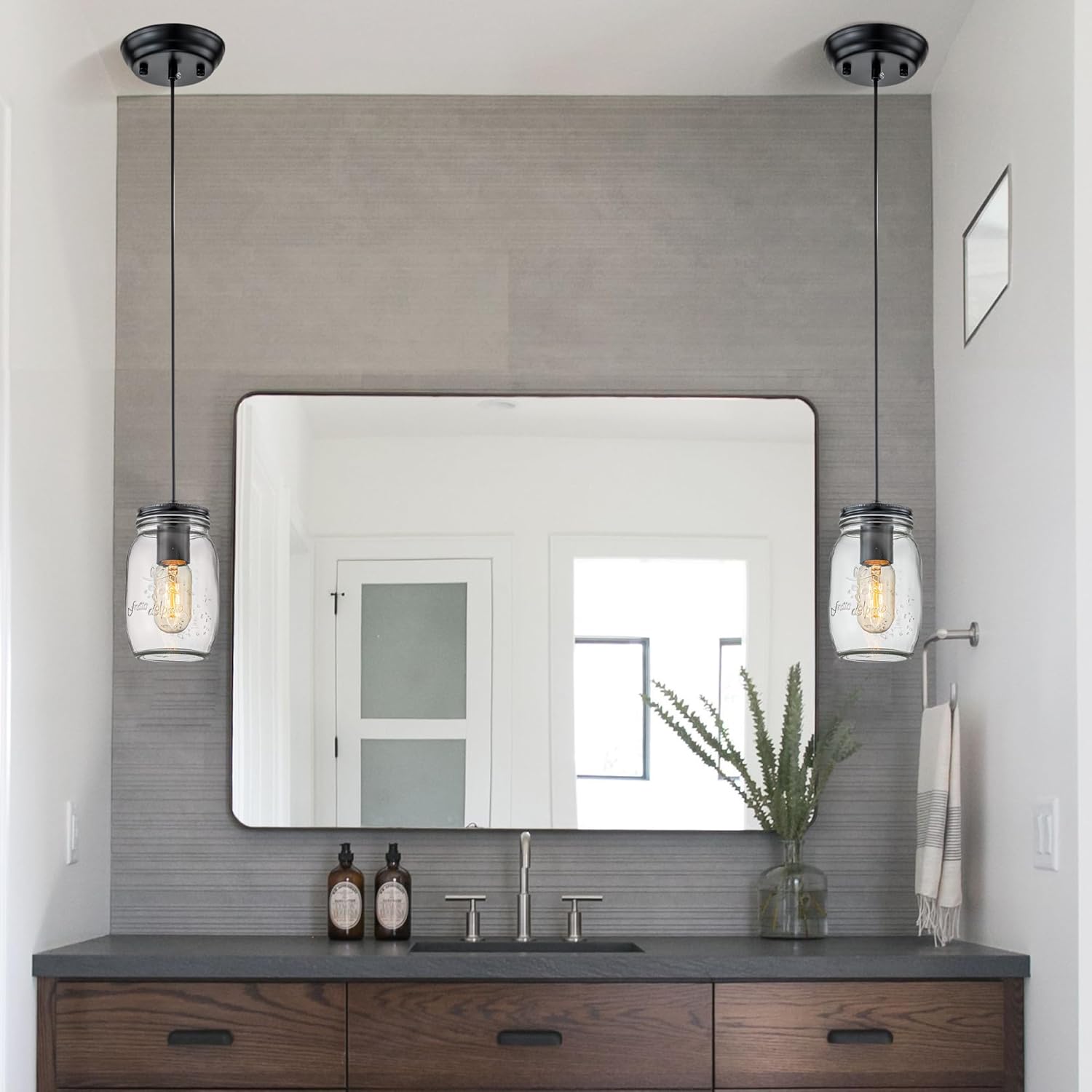 • Unique Design of Pendant Lighting for Kitchen Island: mason jar light fixture is composed of a metal ceiling mount and the mason jar glass shade, add classy and elegant beauty to any interior with its modern farmhouse look. Perfect for living room bedroom, kitchen, porch or bathroom vanity and other places for decoration required.