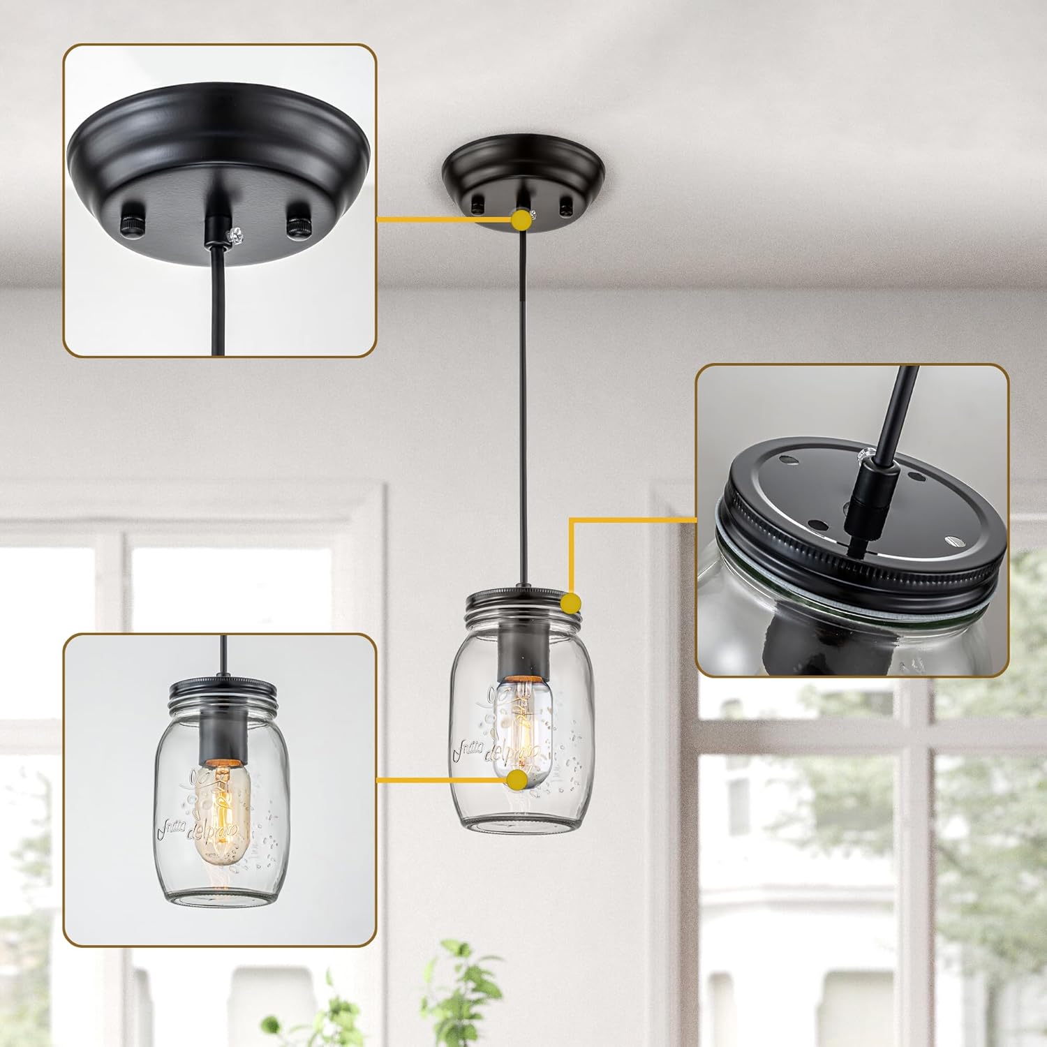 Kitchen Island Light, 1 Lights Adjustable Pendant Lighting, Glass Mason Jar Hanging Lamp(2 Pack)