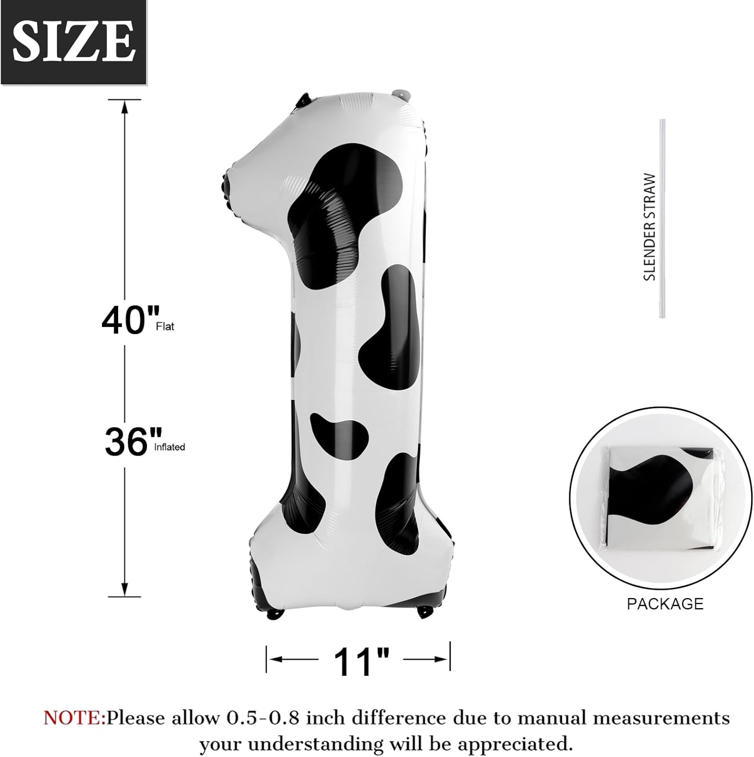 Cow Print Number Balloon Birthday Decorations, 40 inch Number balloon 0-9(Zero-Nine), Cow Balloon for Farm Birthday Party Supplies, Cow Themed birthday party Decorations (Number 1)