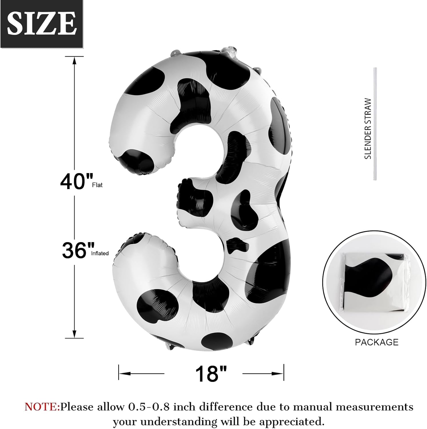 • 【Cow Print Number Balloon】- The package includes number balloons (uninflated) and a straw. You can purchase additional cow numbers to combine into any number you want. The cow print number balloon will be perfect for your kids party, whether it's throwing a cowboy themed party, farm themed party, or any birthday party. Add lots of whimsy to your decor!
